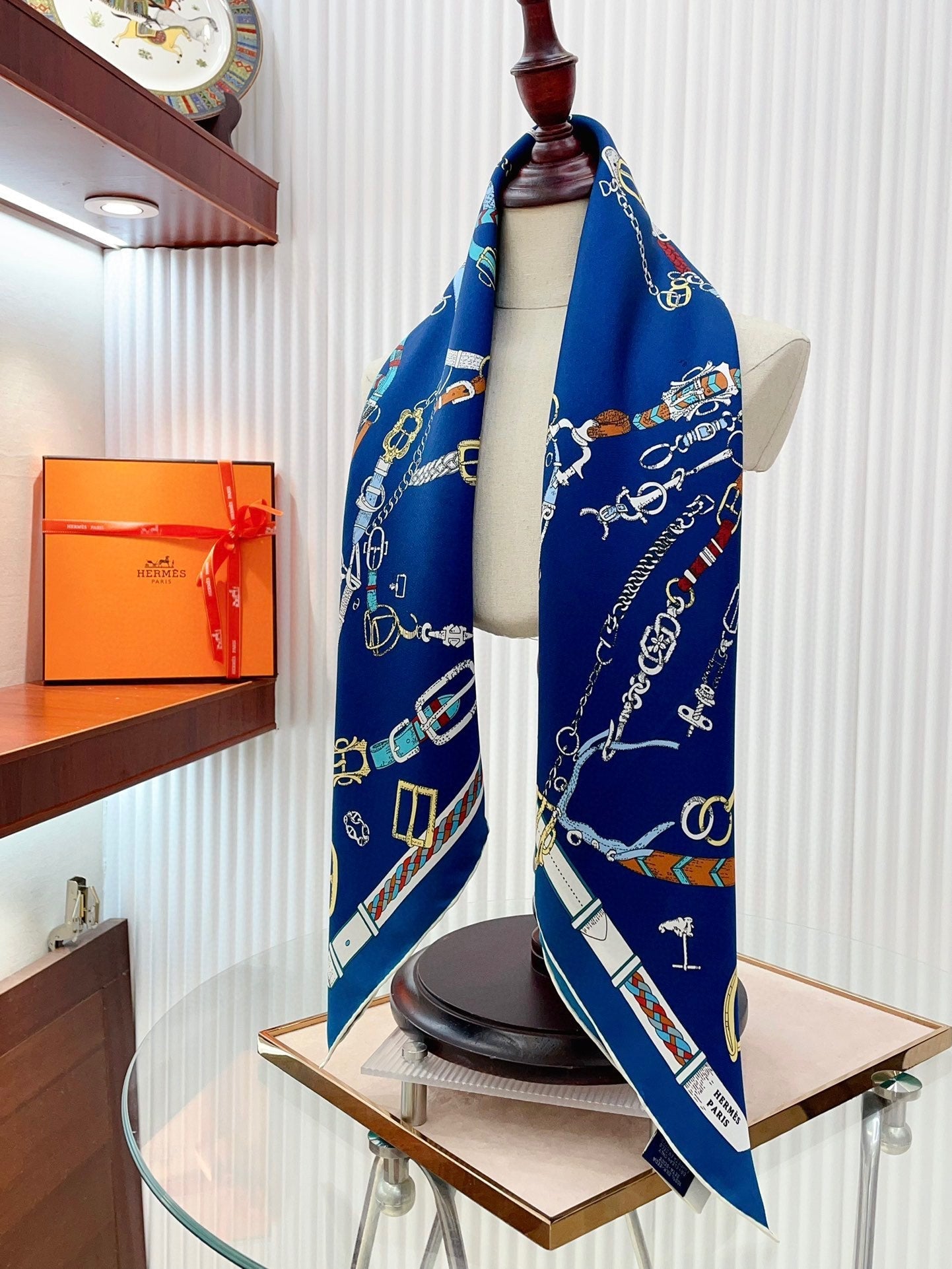 Chevaux Dechaines Shawl 90 CM In Dark Blue Colorful Silk Twill 201032