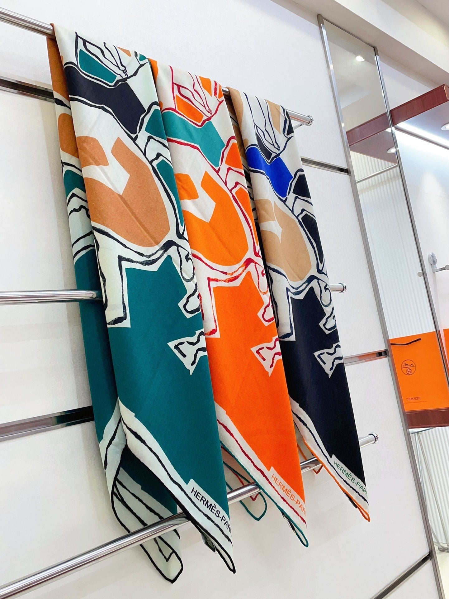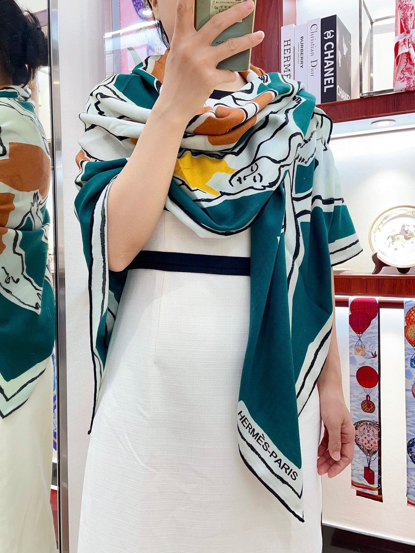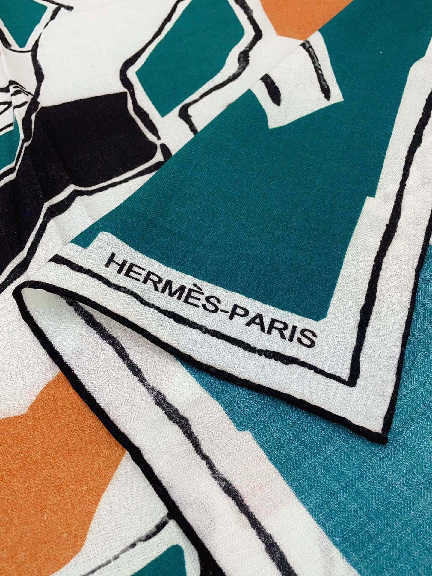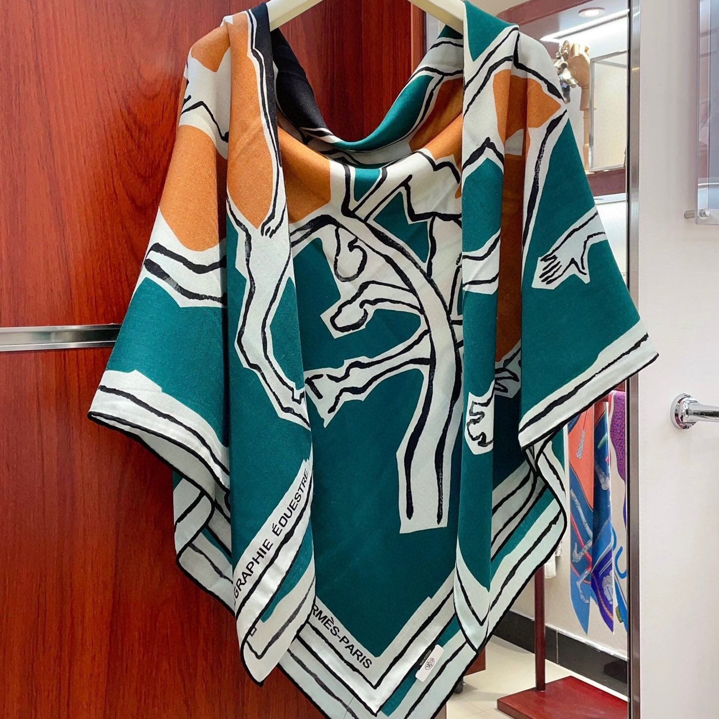 Choregraphie Equestre Pareo Scarf 140 CM Teal Blue Colorful Cashmere And Silk 393171