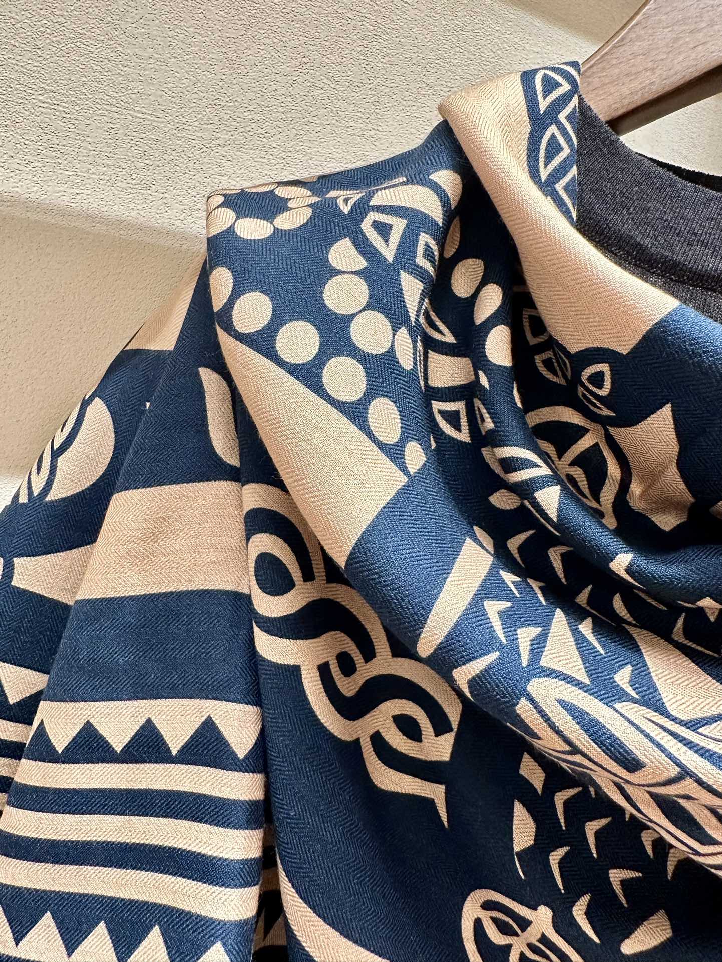 Fantaisie d'Etriers Scarf 140 CM Navy Blue Silk