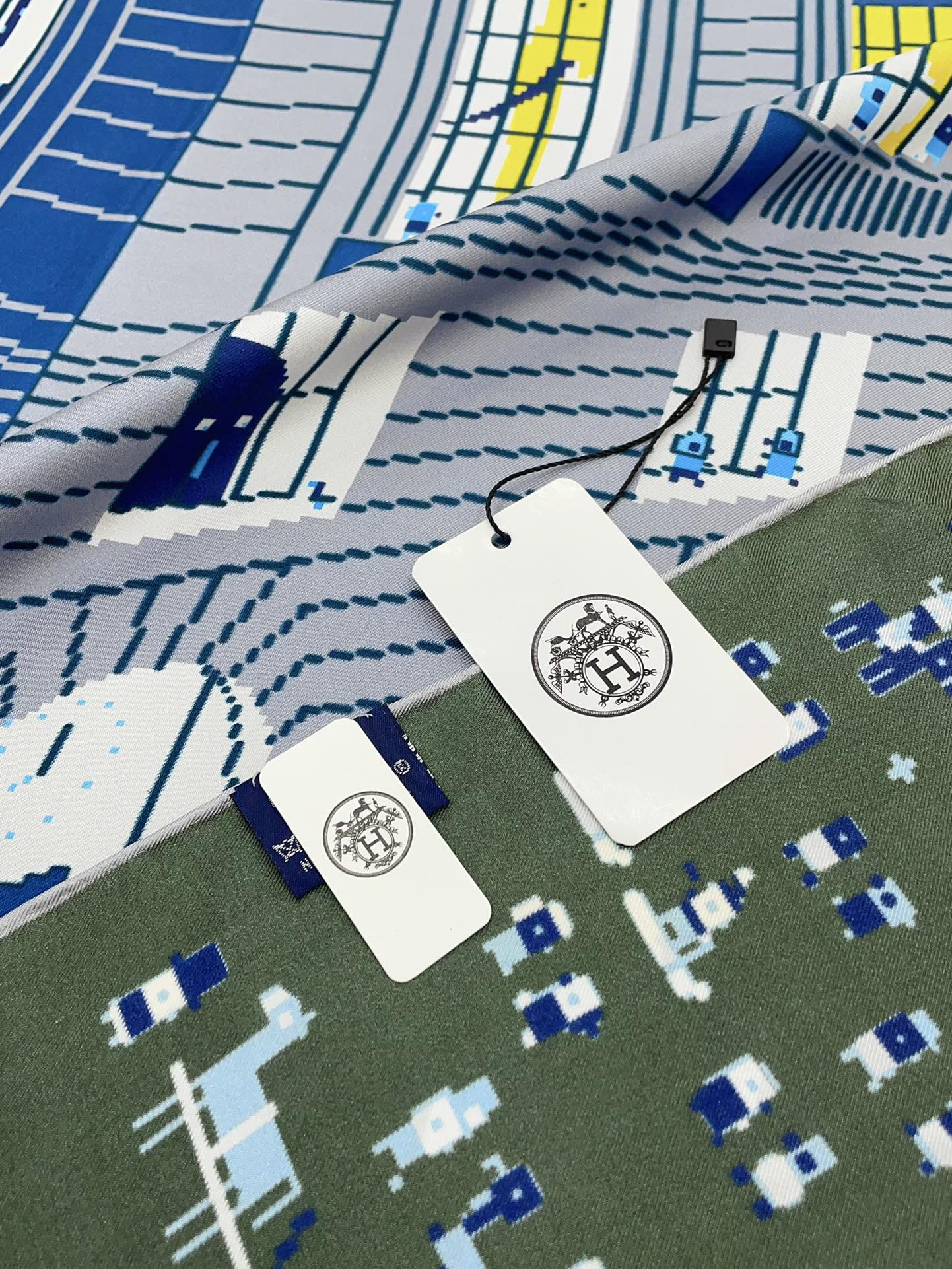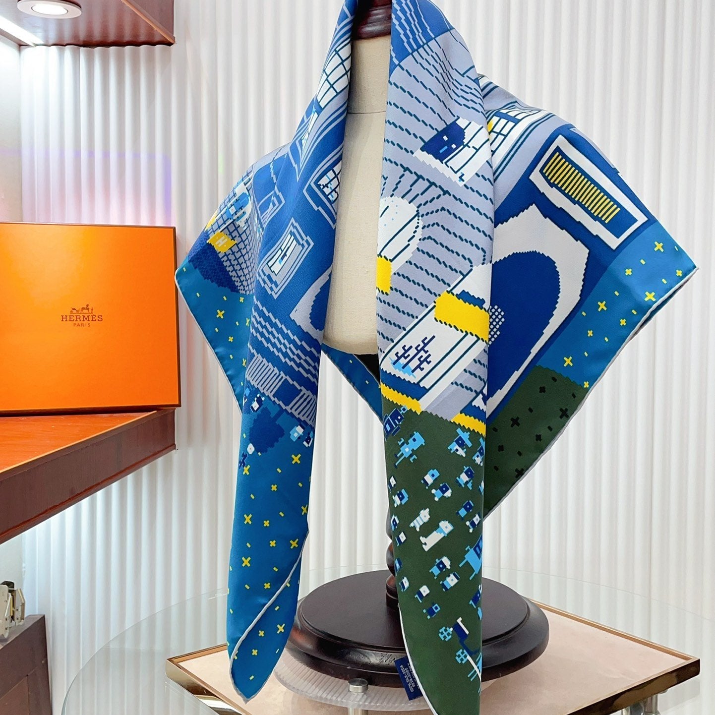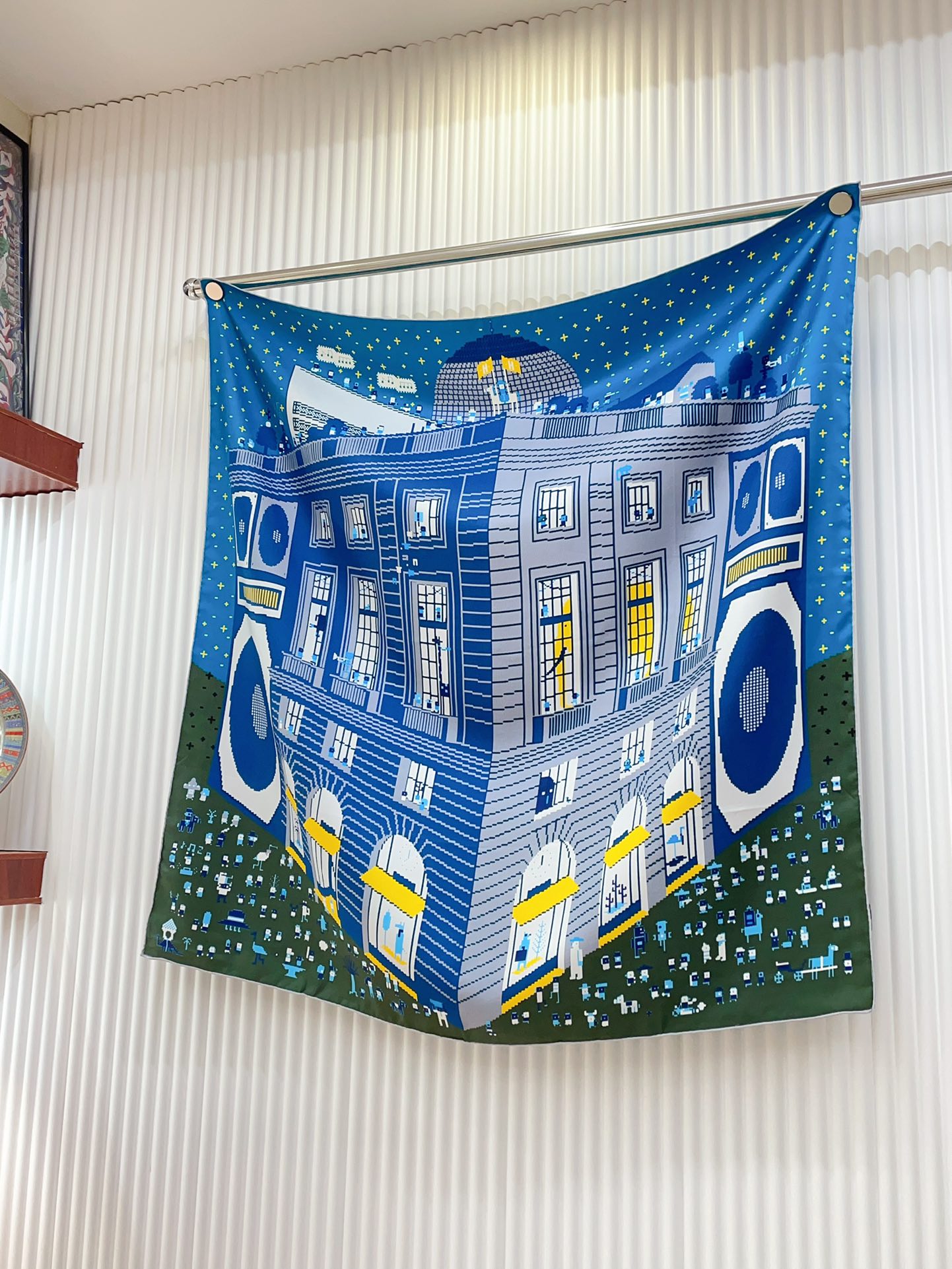 Faubourg Party Scarf 90 CM In Blue Colorful Silk Twill 198582