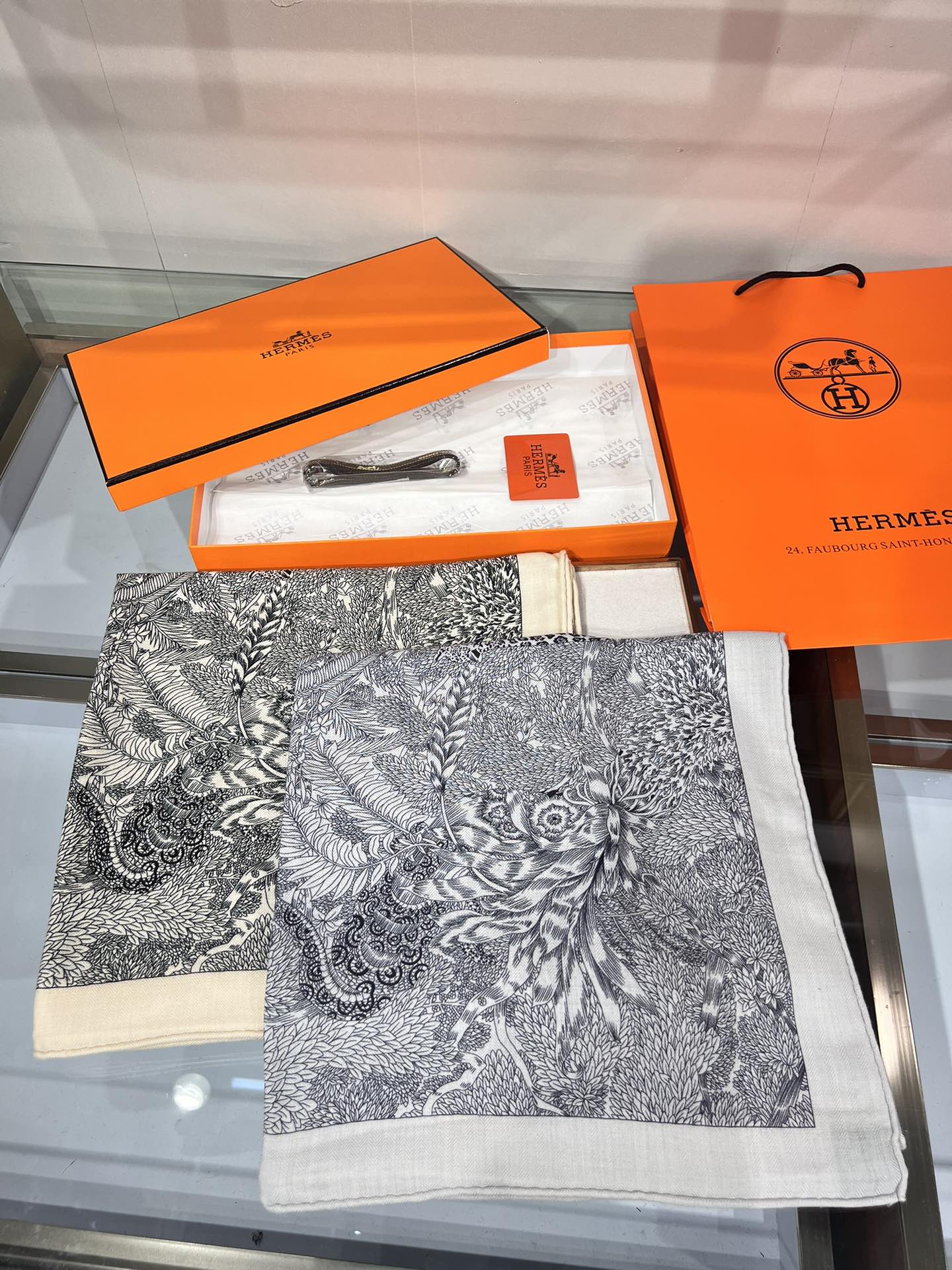 Faubourg Tropical Scarf 135 CM Grey White Cashmere And Silk