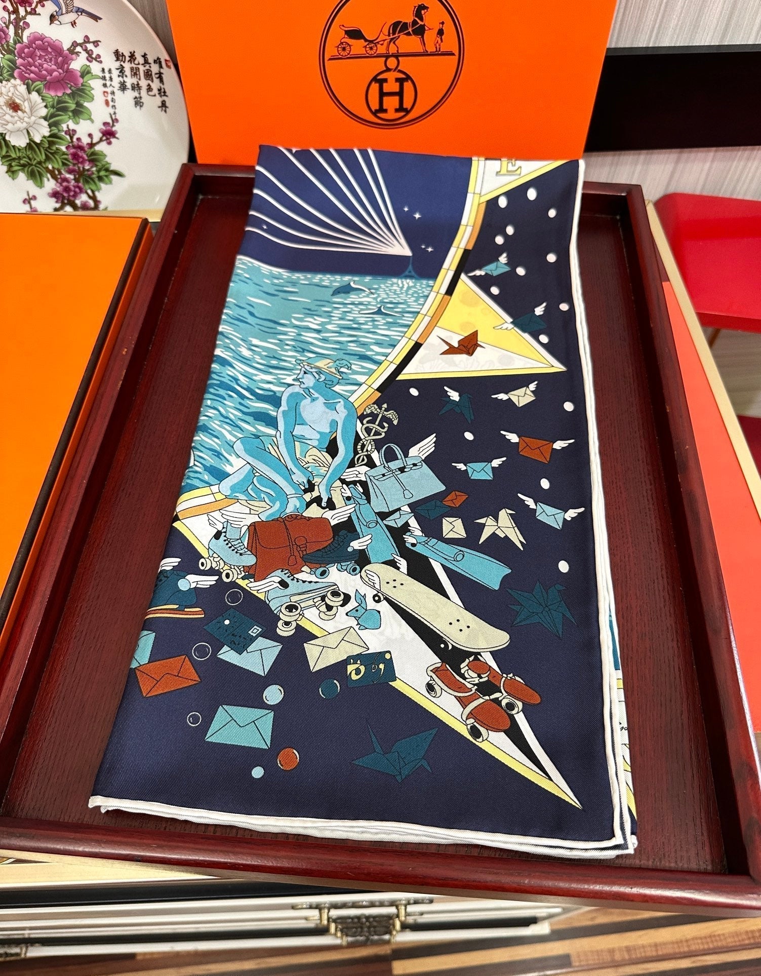 Flagship Silk Scarf 90 CM Charcoal Blue Colorful