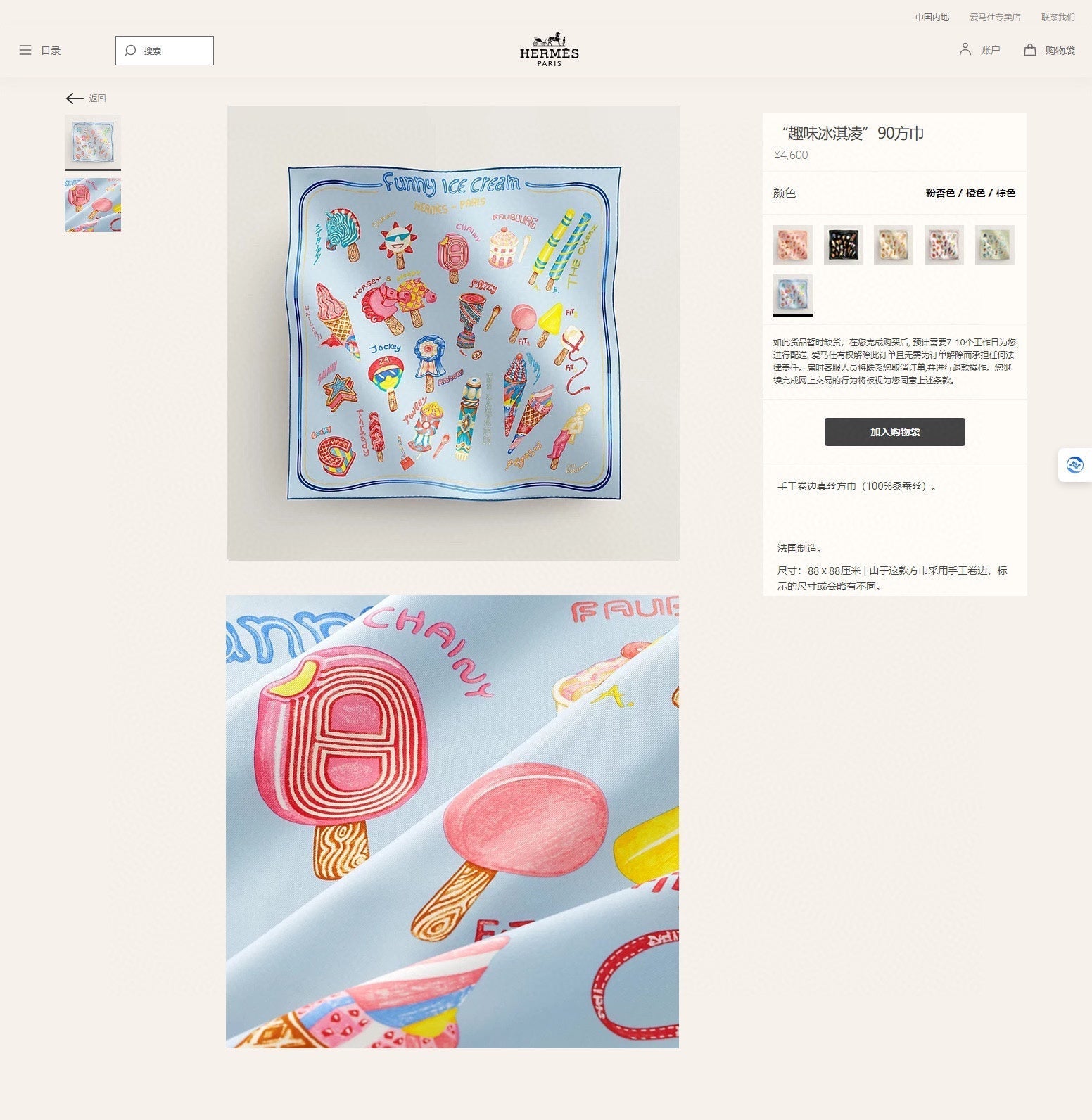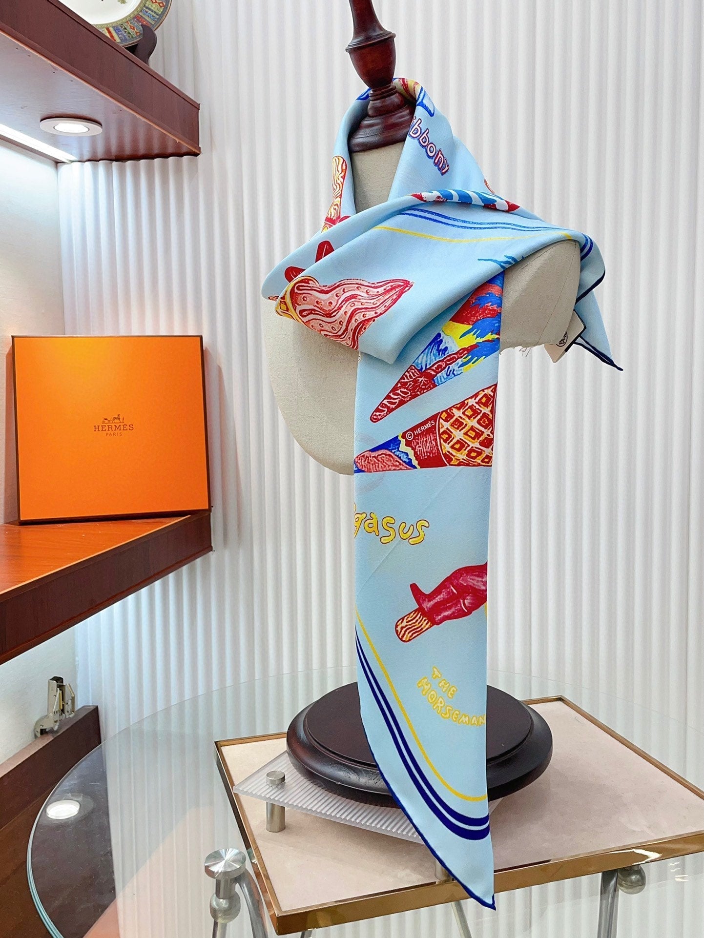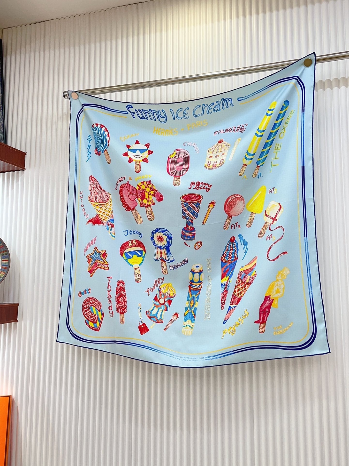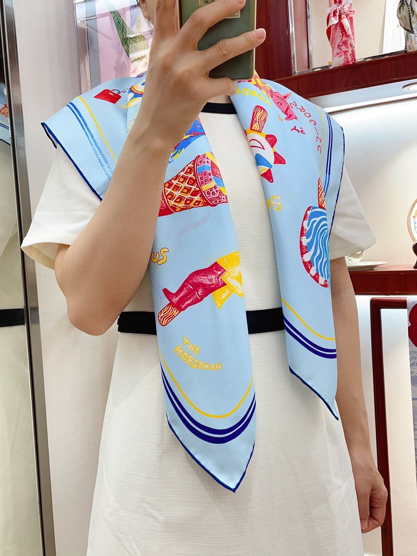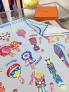 Funny Ice Cream Scarf 90 CM In Light Blue Colorful Silk Twill 300439