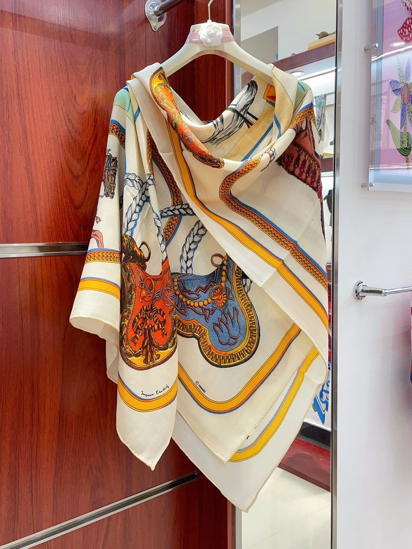 Grand Apparat Forever Scarf 140 CM In White Colorful Cashmere And Silk 378466