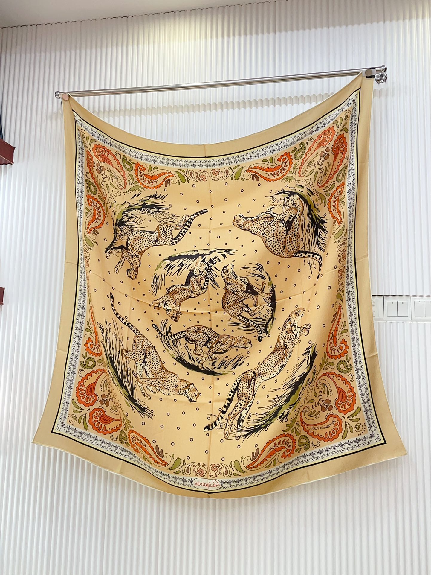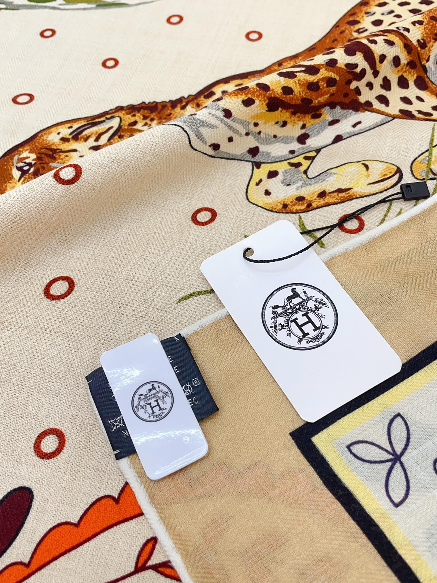 Guepards Bandana Double Face Scarf 140 CM In White Mix Beige Colorful Cashmere And Silk 334192