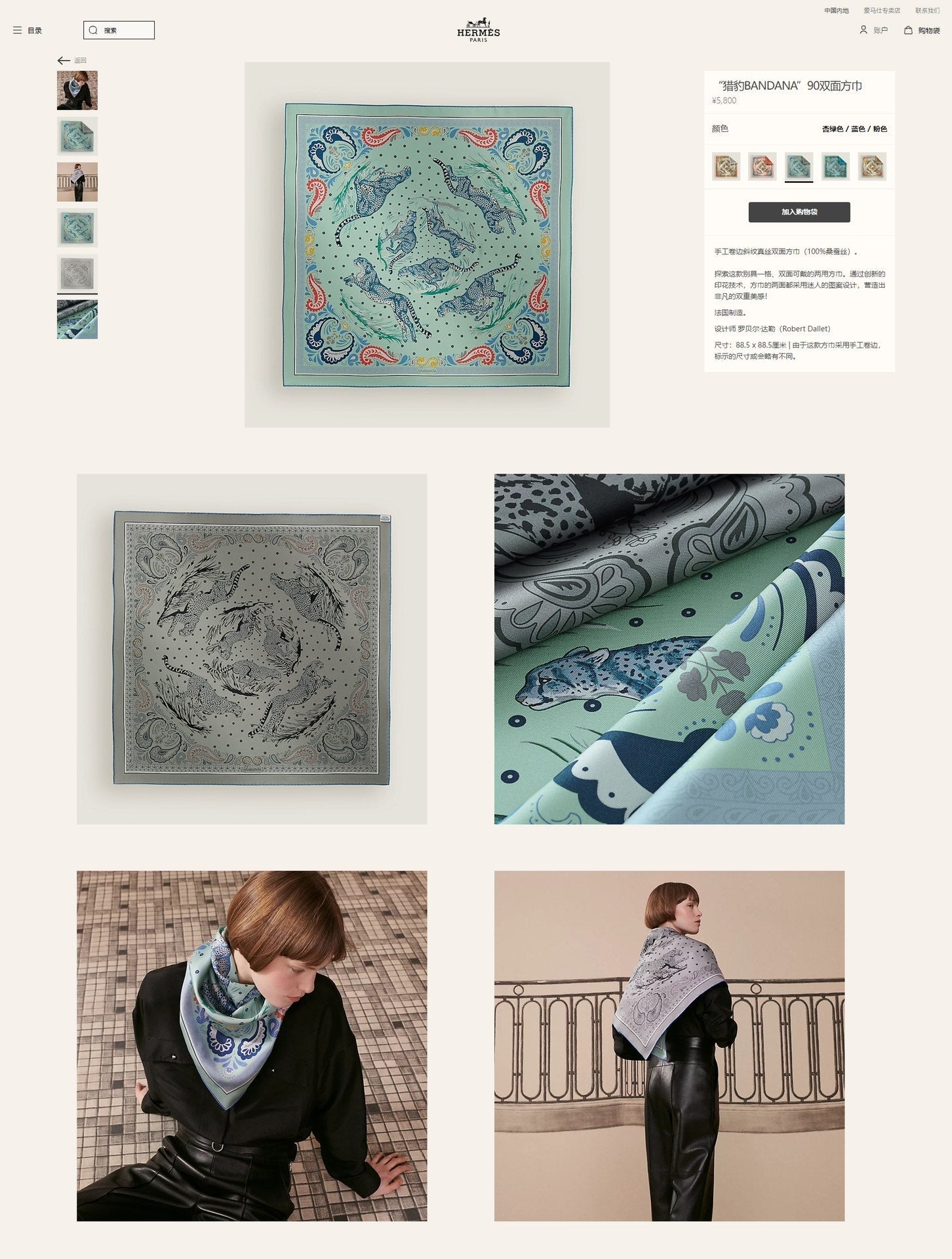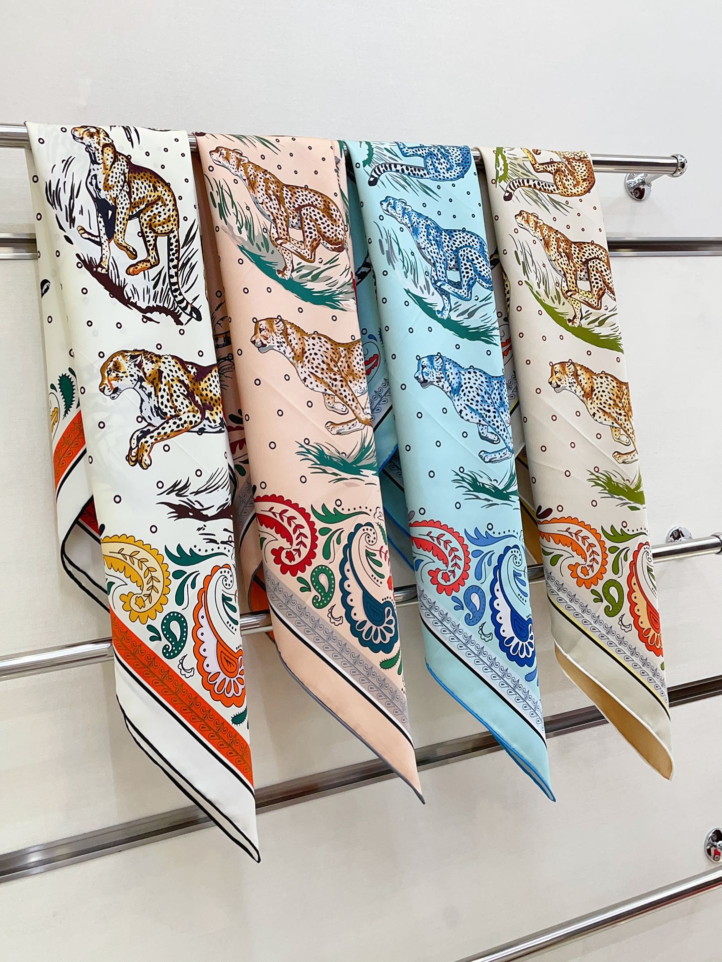 Guepards Bandana Double Face Scarf 90 CM In Colorful Silk 301848