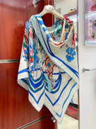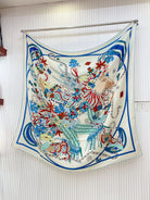 La Danse Du Printemps Scarf 140 In Light Blue Colorful Cashmere And Silk 344364