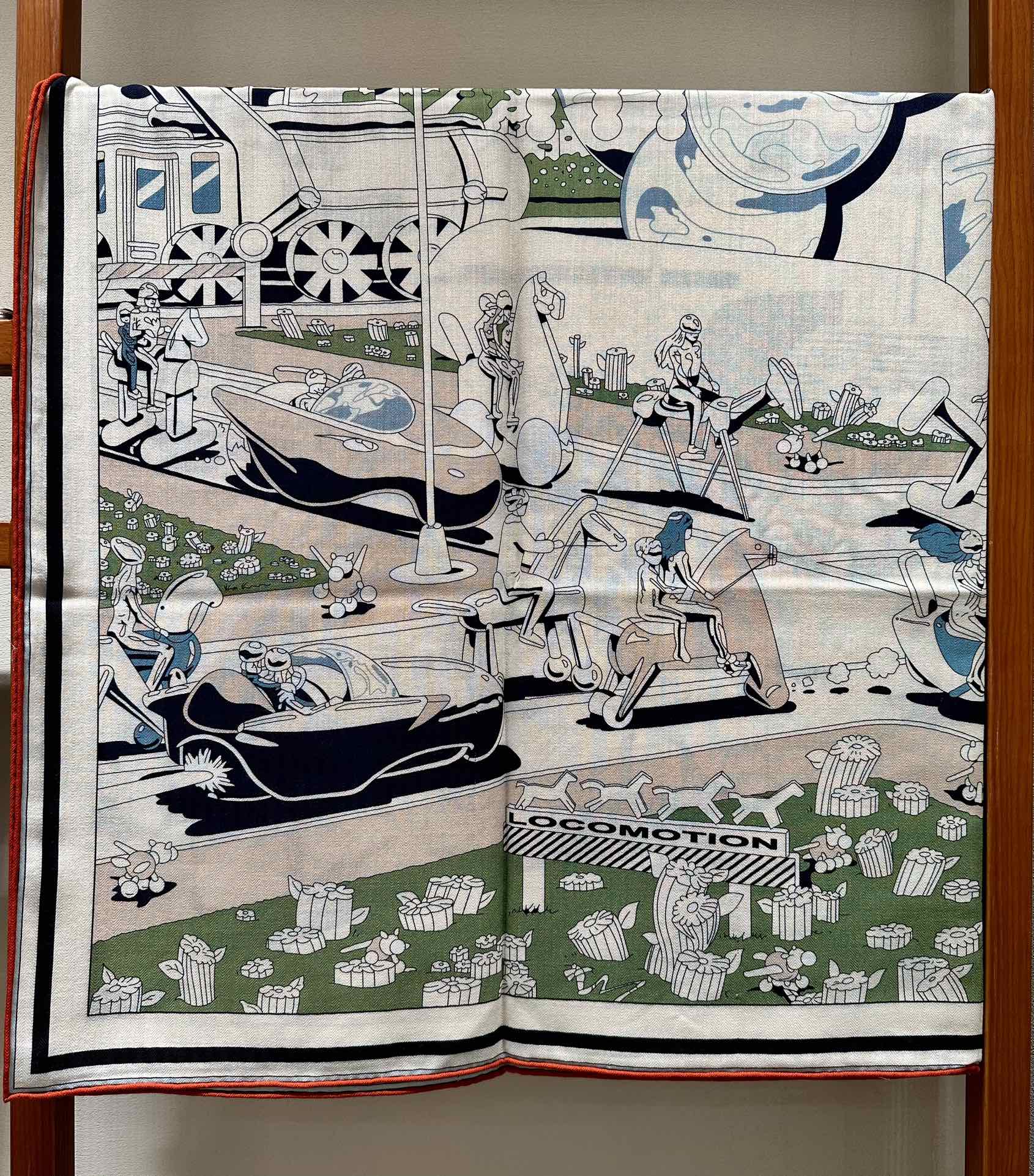 Locomotion Shawl 140 CM In Dark Blue Colorful Cashmere And Silk 384146