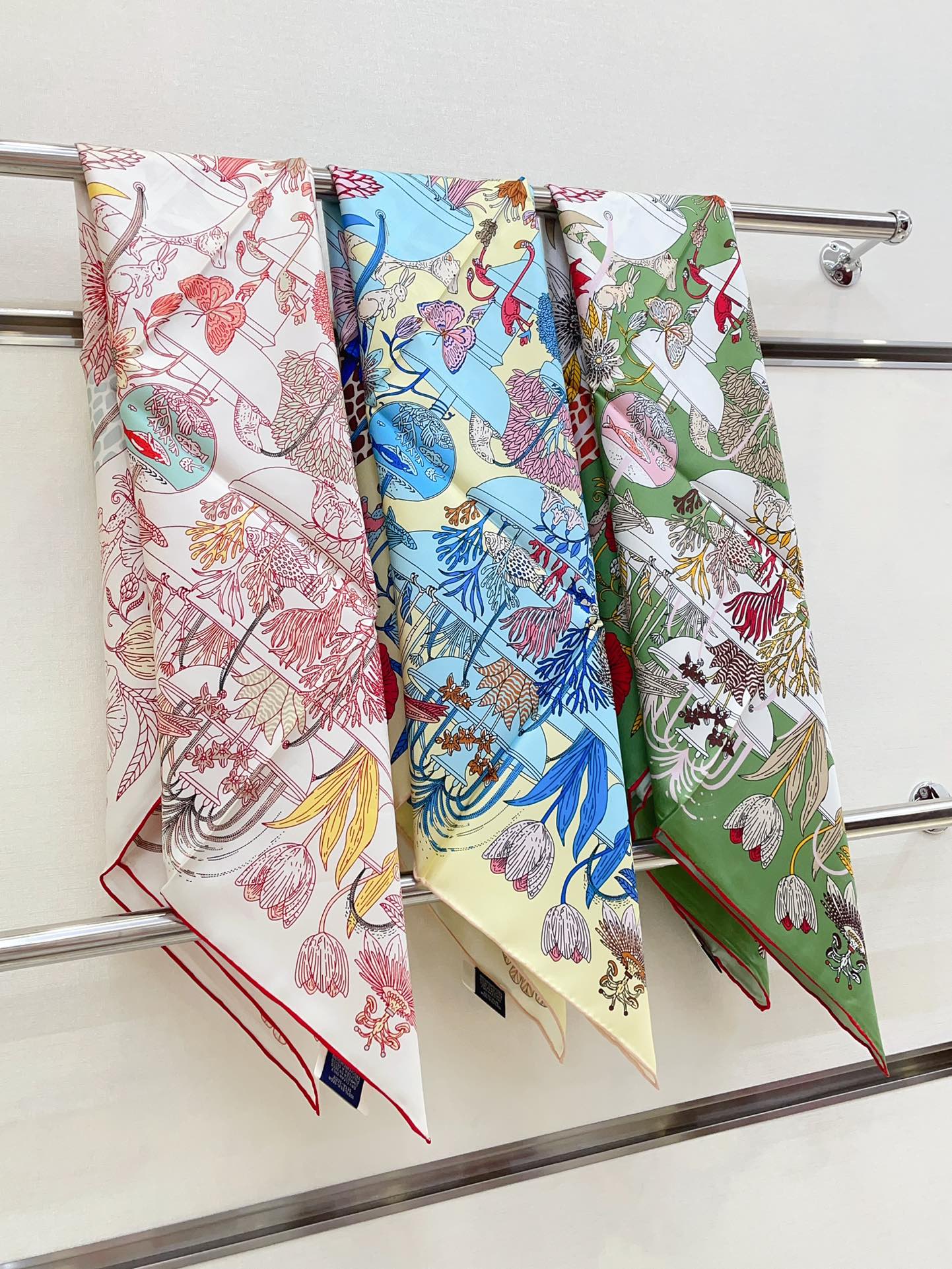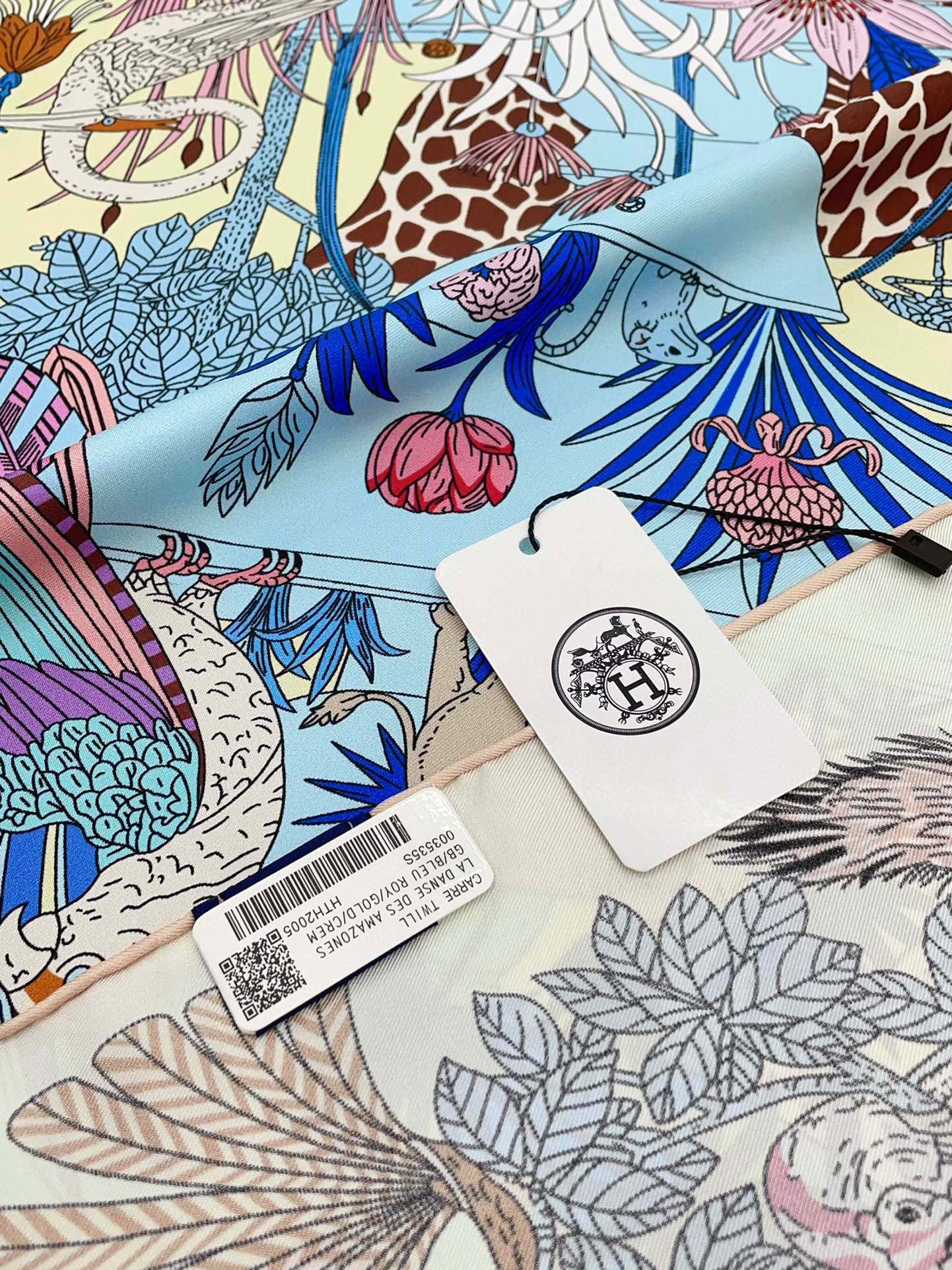 Precious Paradise Scarf 90 CM In Light Blue Colorful Silk Twill 294487