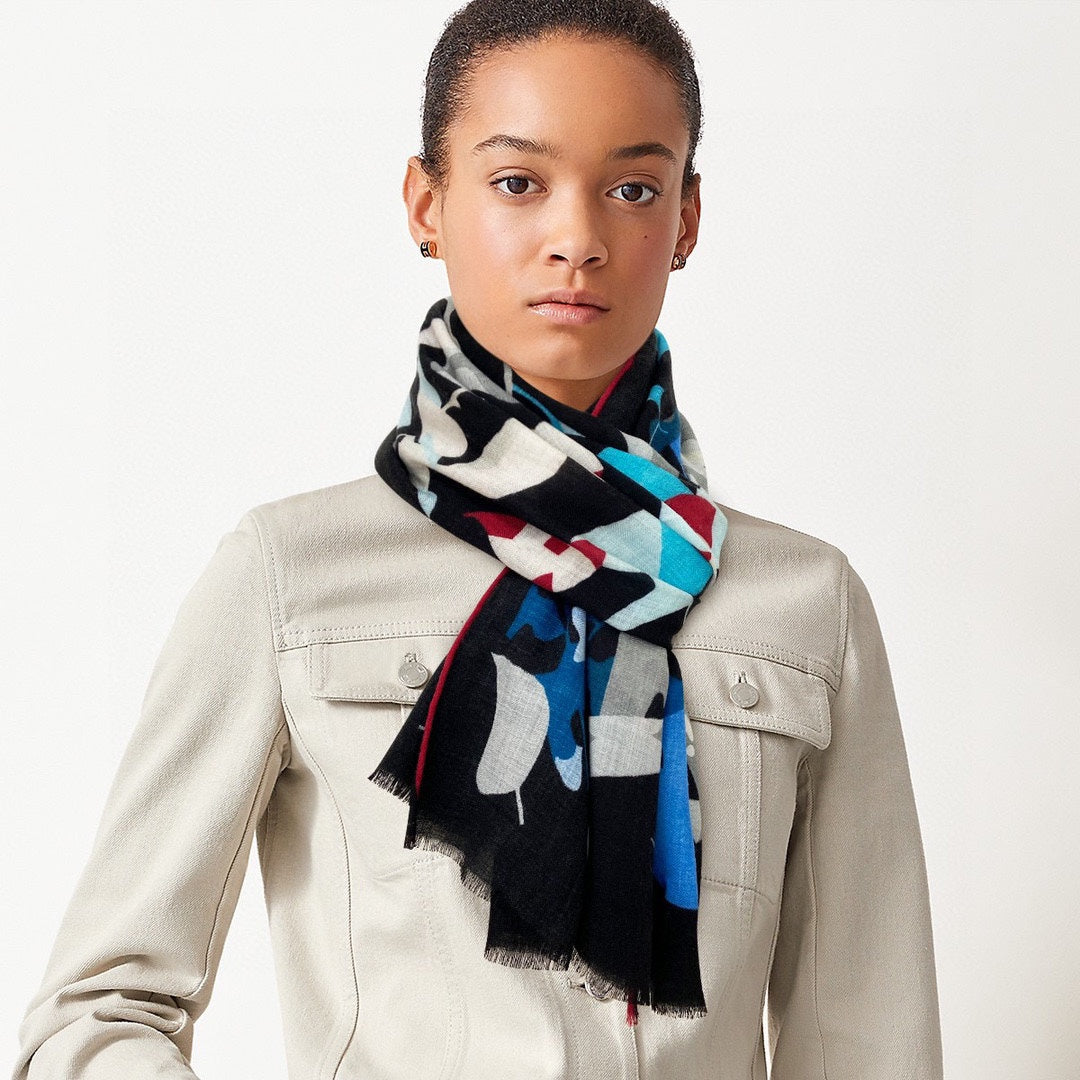 Scarf 180 CM Black Colorful Mashmere And Silk 403888