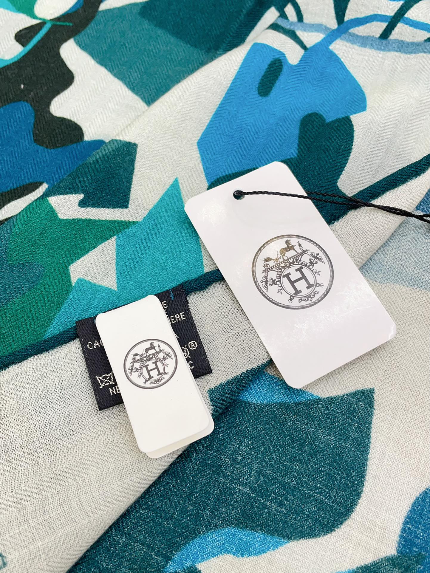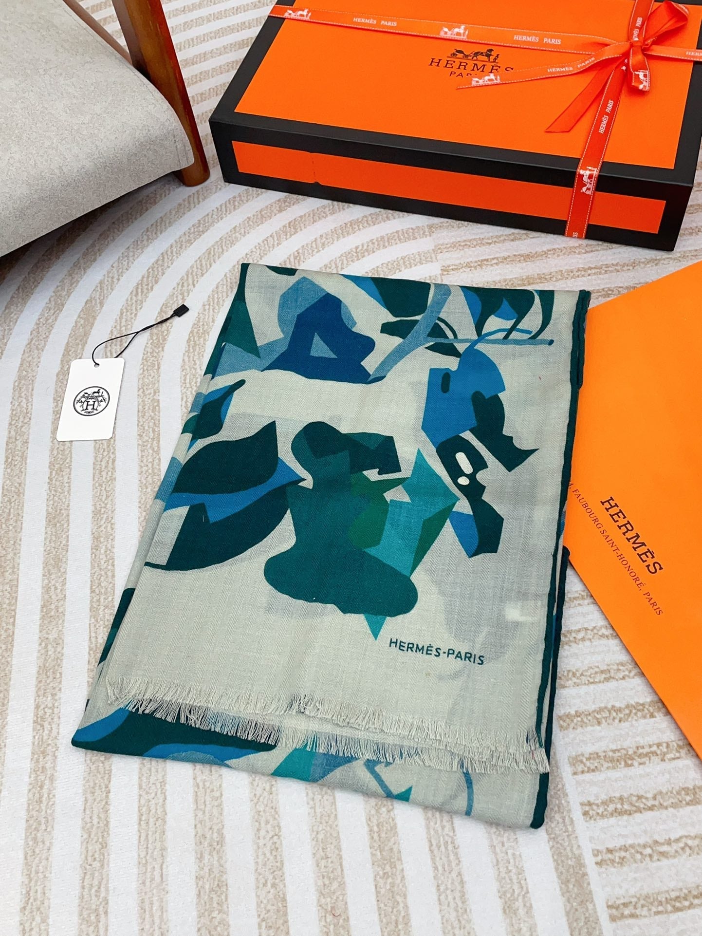 Scarf 180 CM Blue Green Colorful Mashmere And Silk 403886