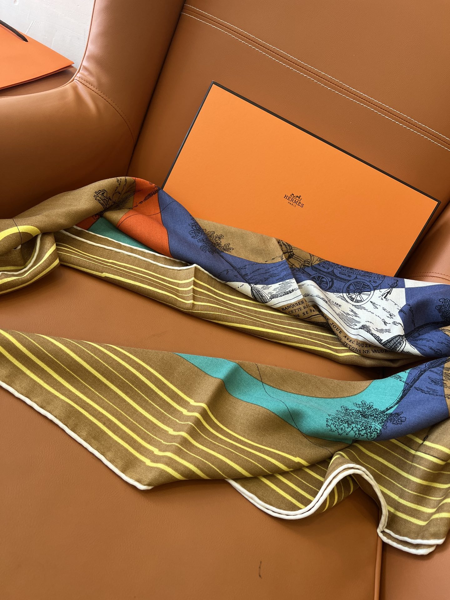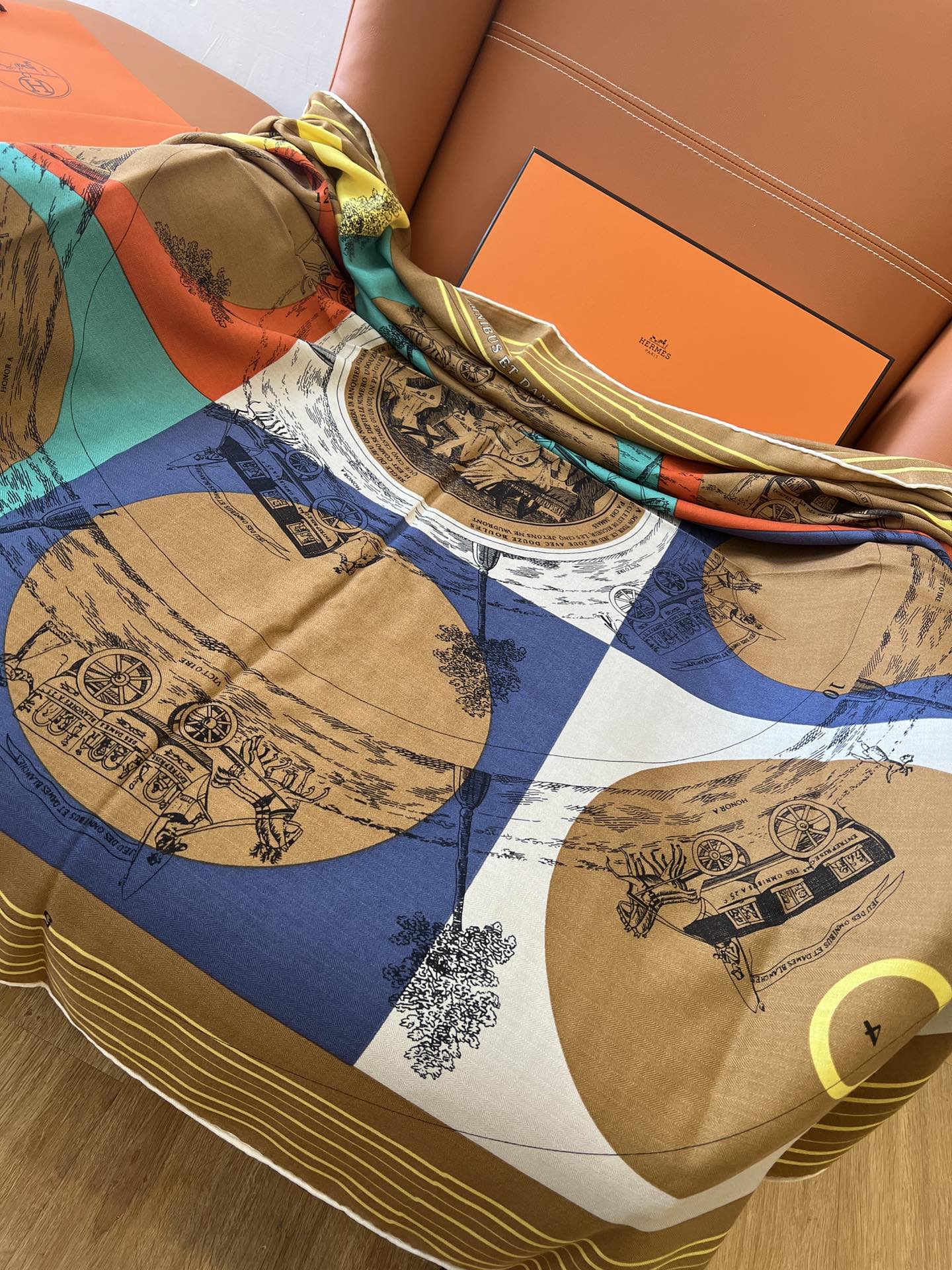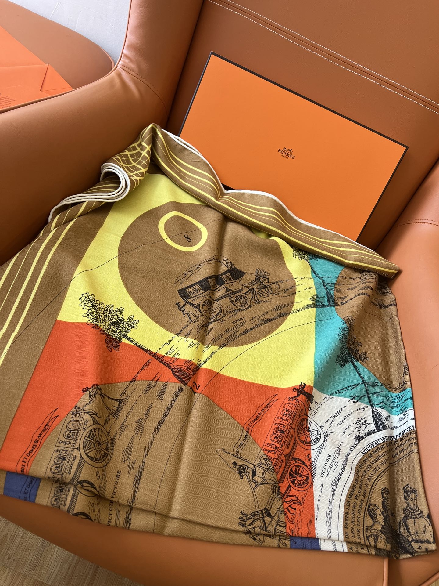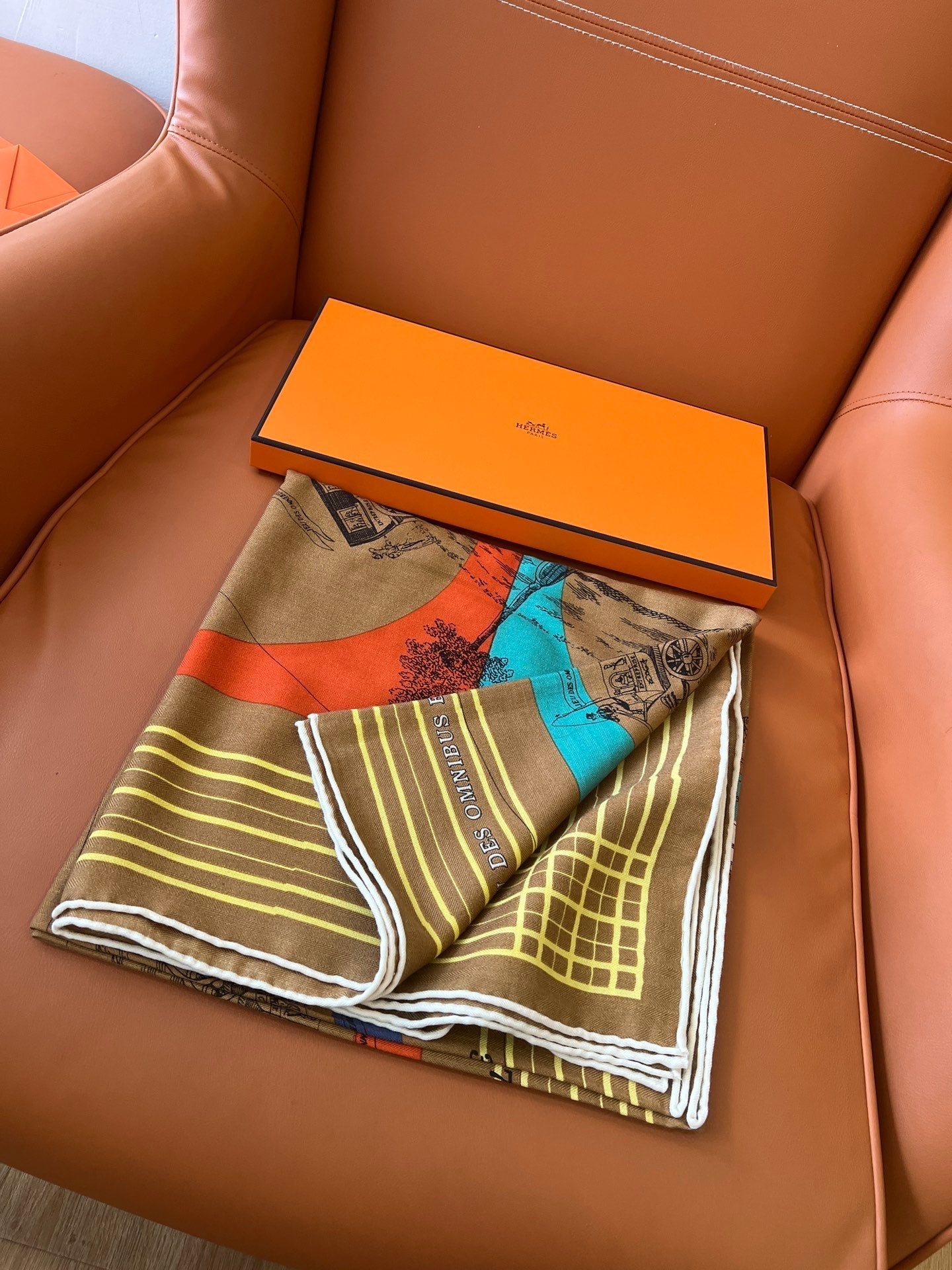 Square Scarf 140 CM In Brown Colorful Cashmere And Silk 327523