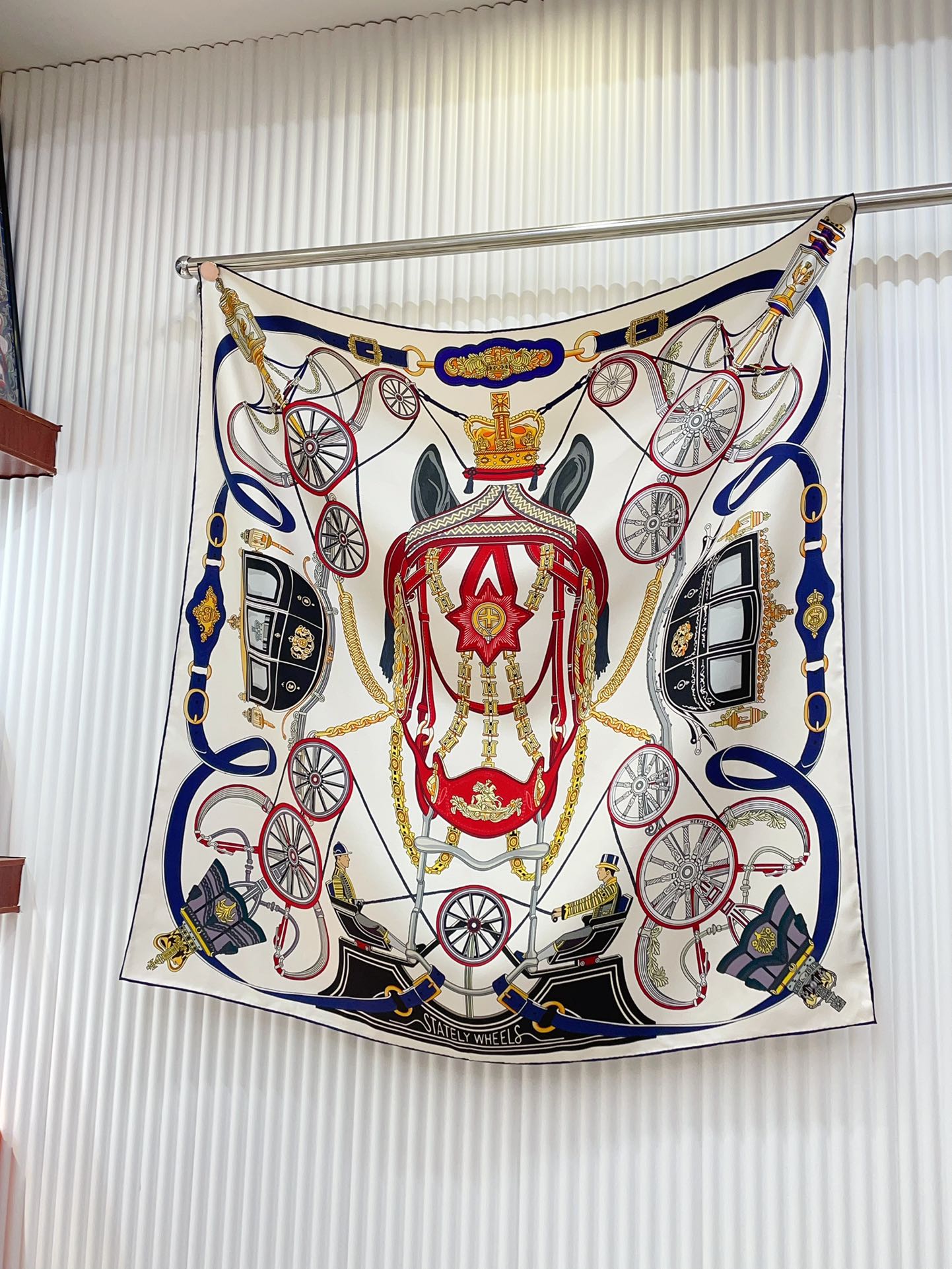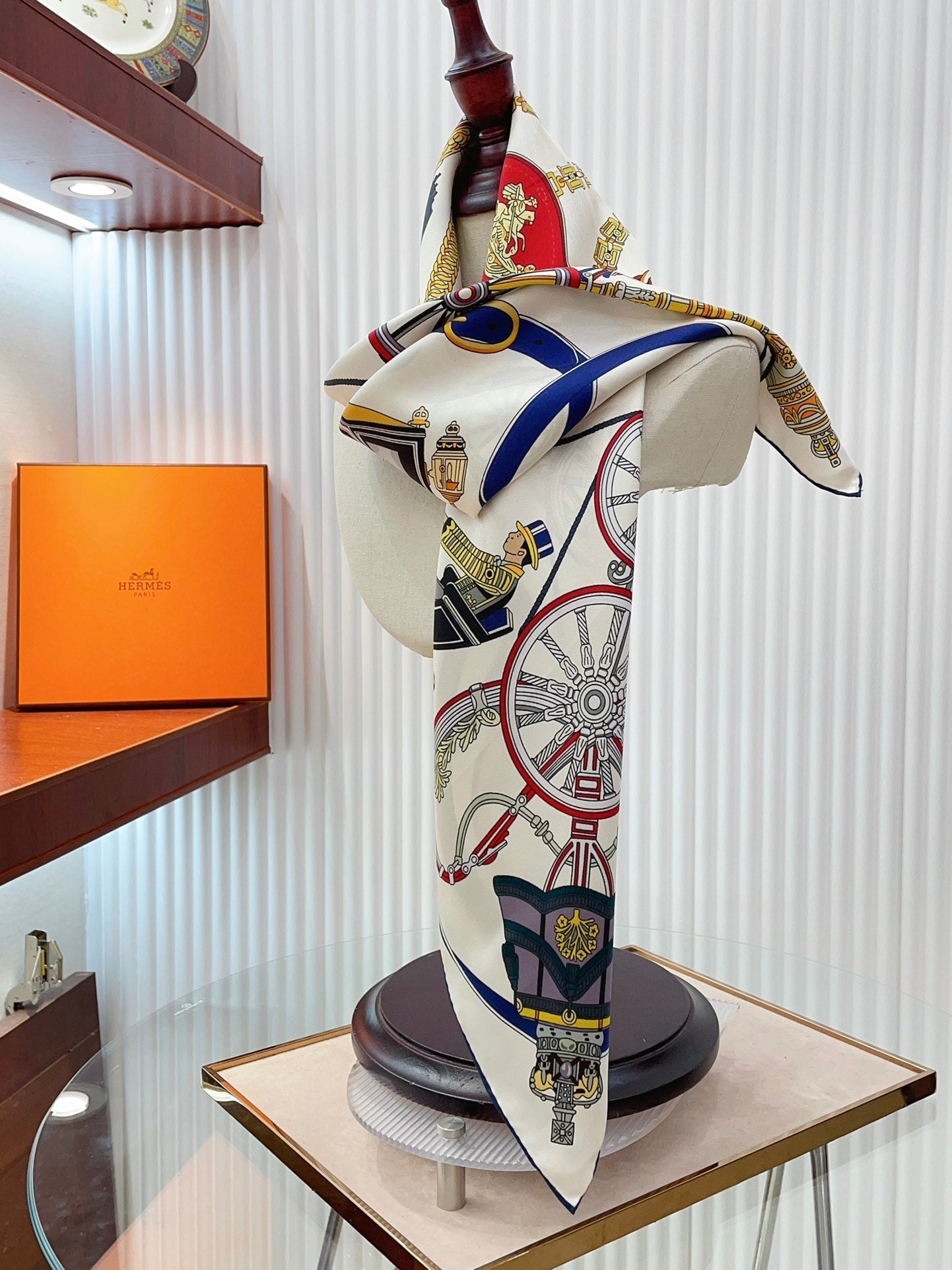 Stately Wheels Scarf 90 CM White Colorful Silk Twill 312874