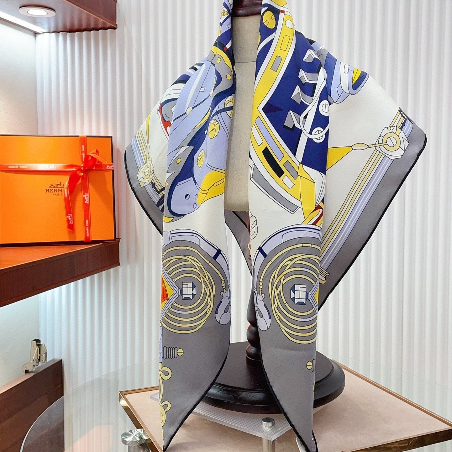 First & Chic Scarf 90 CM In Grey Blue Colorful Silk Twill 202493