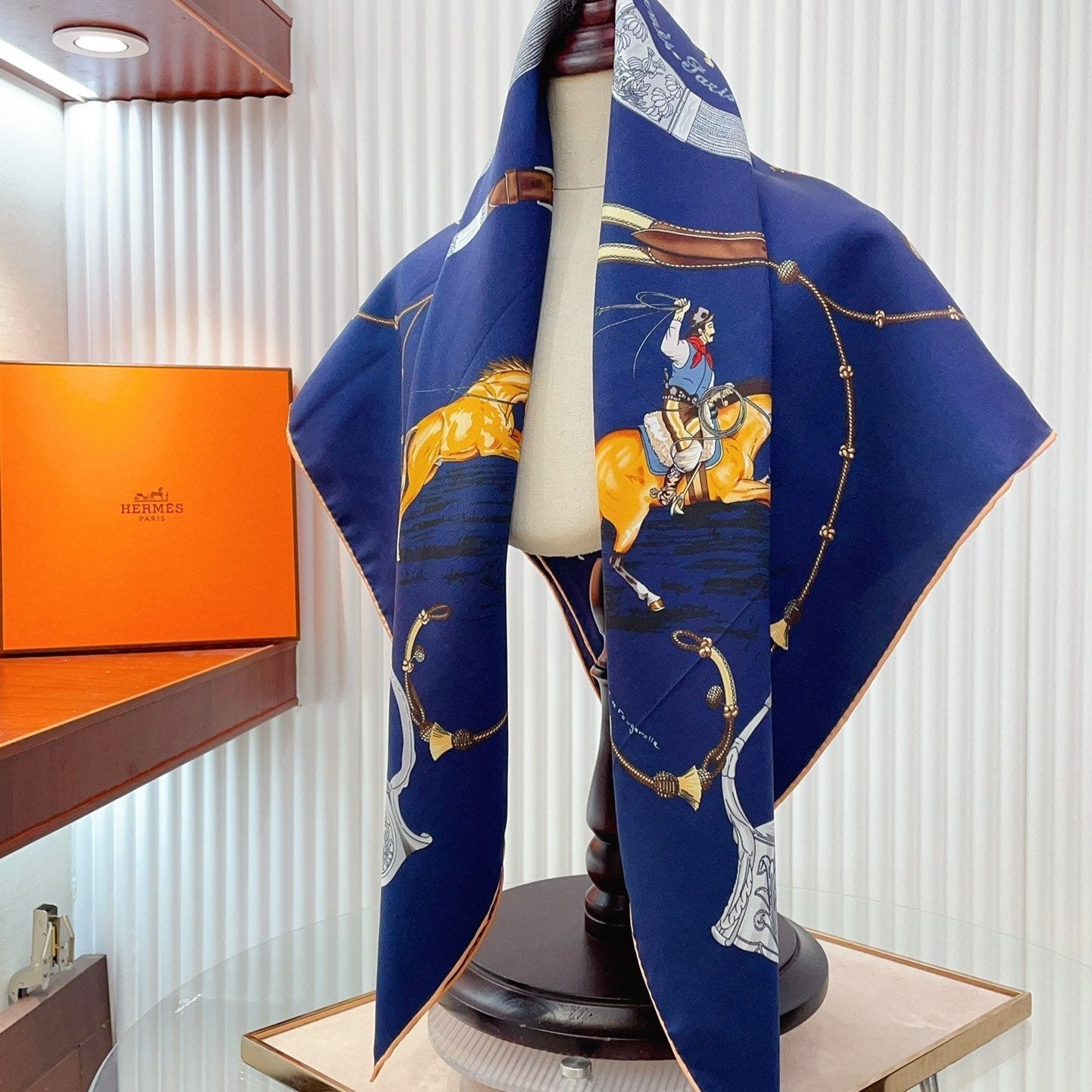 Fantaisie d'Etriers Scarf 140 CM Navy Blue Silk