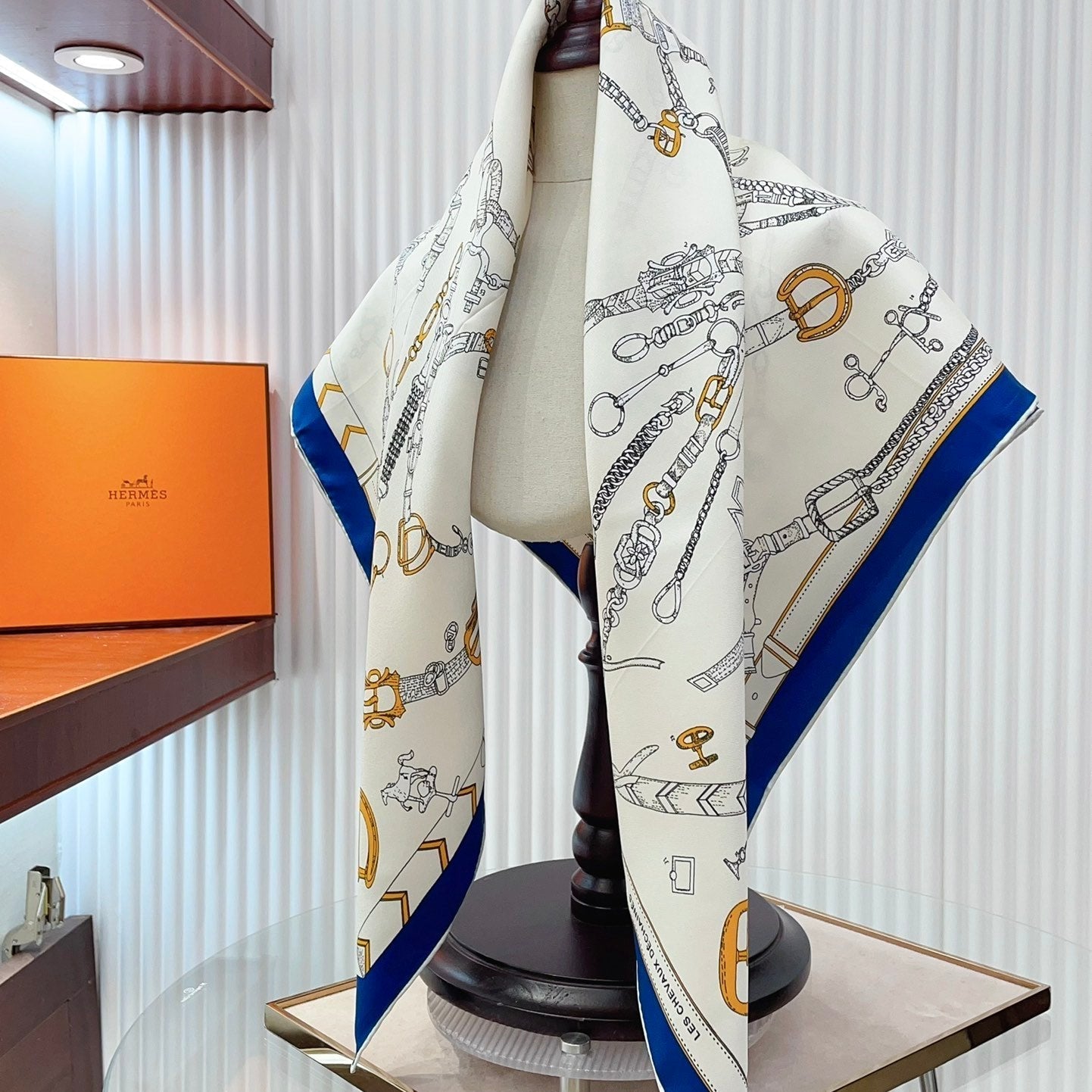 Cheval De Legende Scarf 140 CM Ivory White Pattern Cashmere And Silk