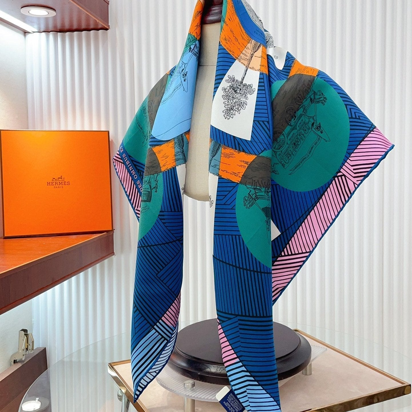 Fantaisie d'Etriers Scarf 140 CM Green Mix Blue Colorful Silk