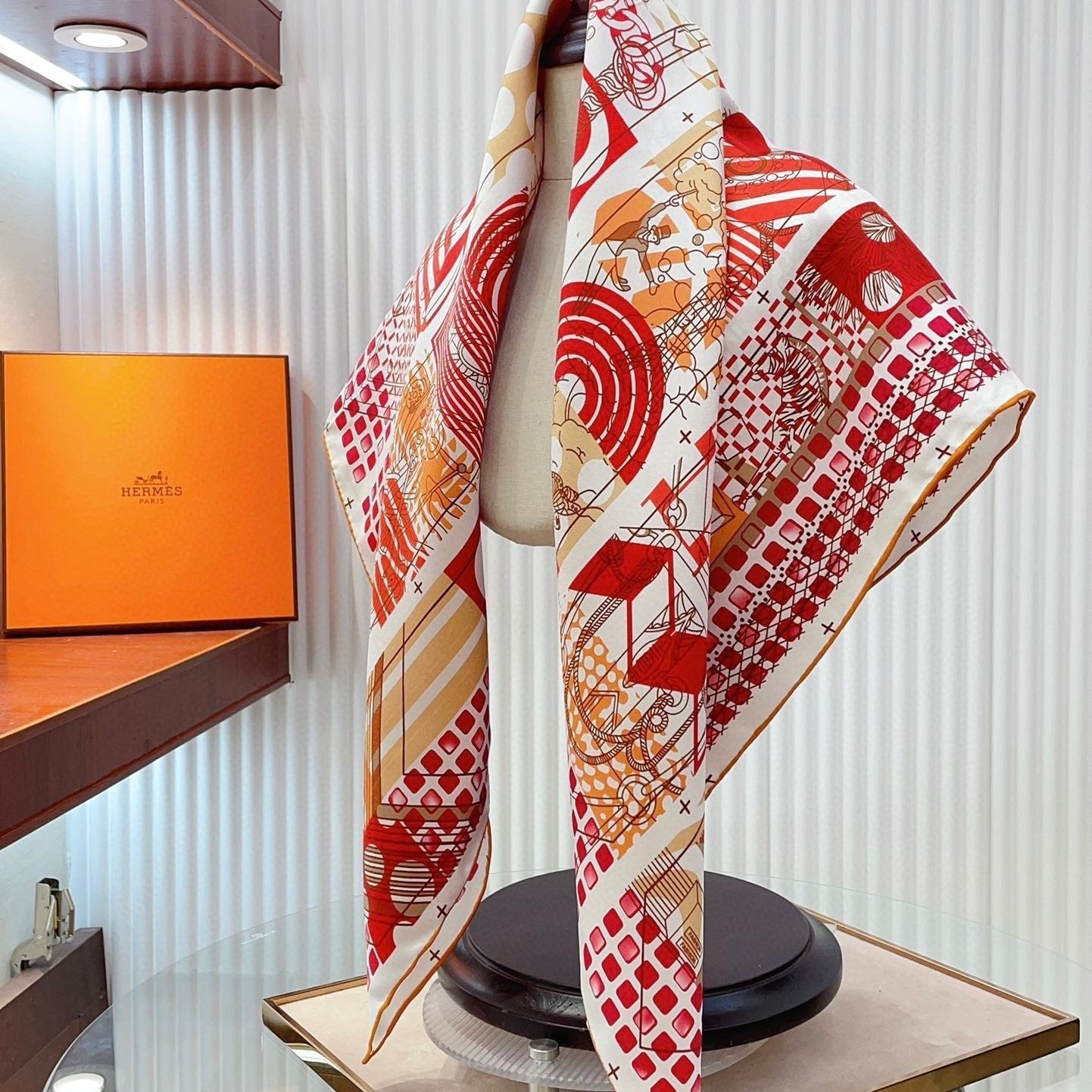 Carré Harnais De Cœur Scarf 90 CM In Orange Colorful Silk 306470