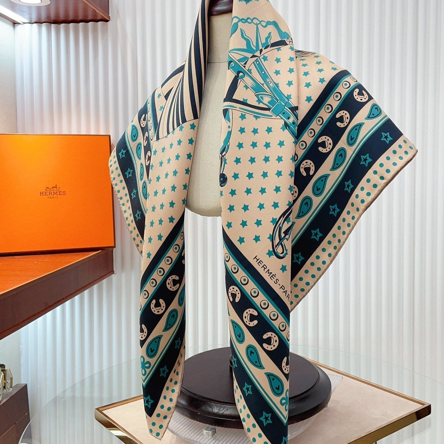Square Scarf 140 CM Ivory White Pattern Cashmere And Silk
