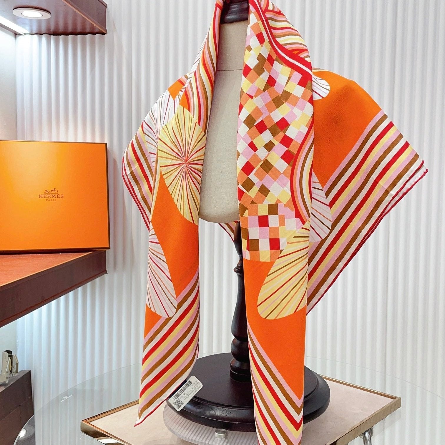 Square Scarf 140 CM Yellow Orange Colorful Cashmere And Silk