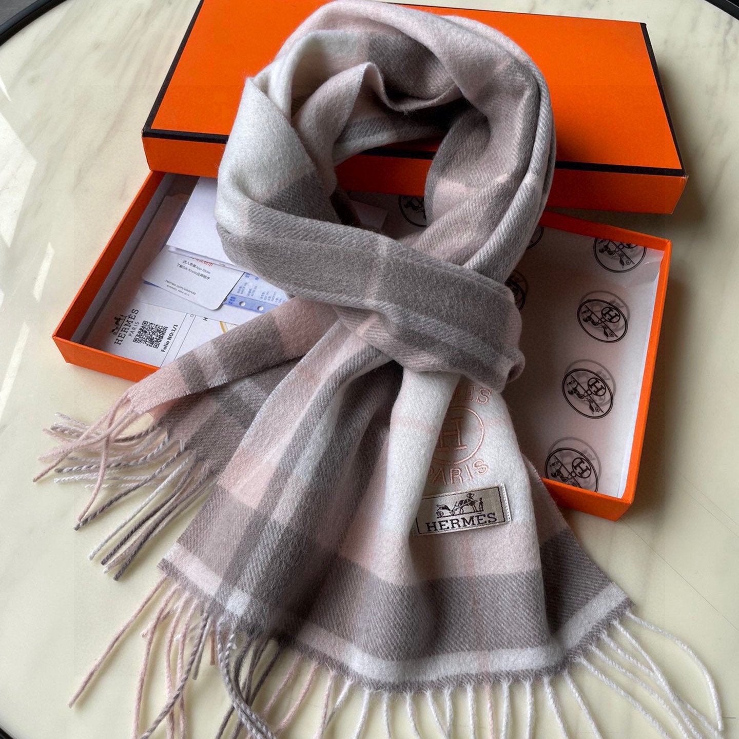 Scarf 190 CM In Grey Pink Mix Light Blue Cashmere