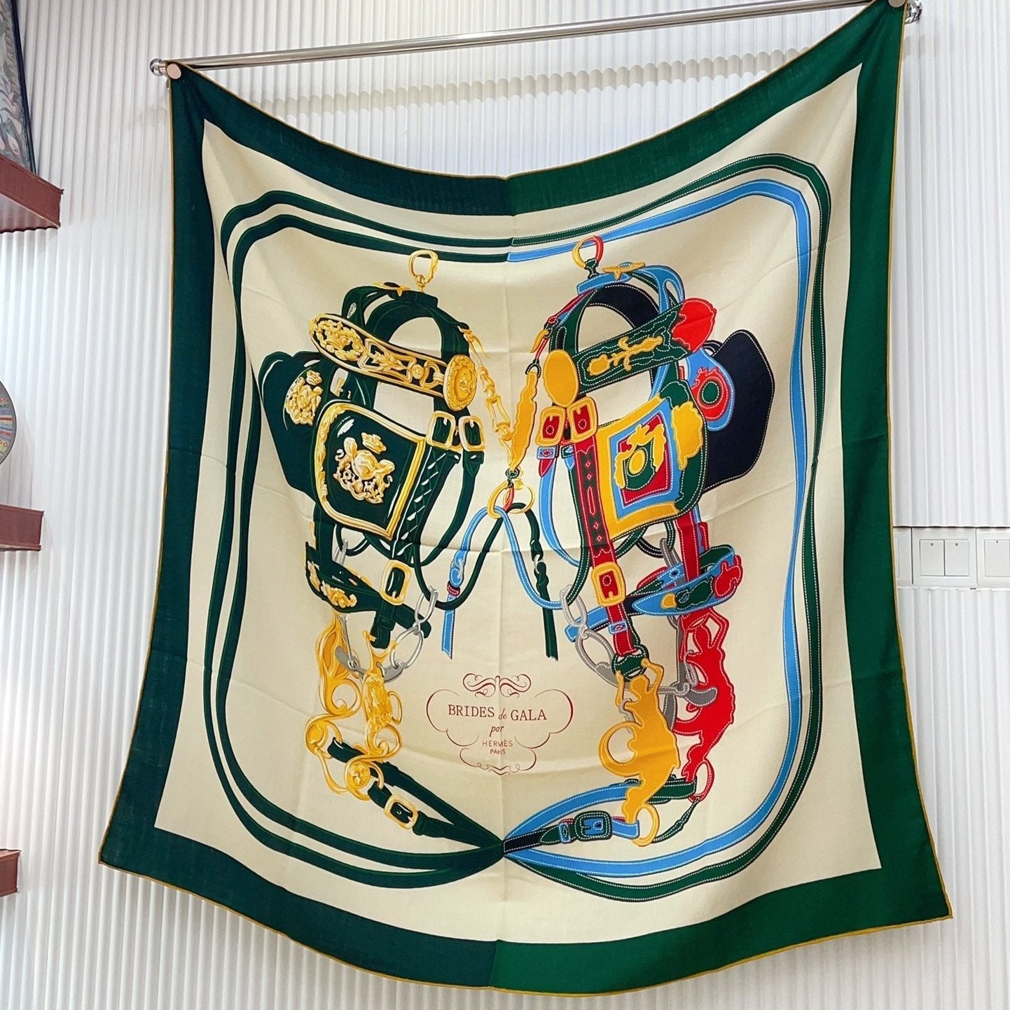 Complication Equestre Scarf 90 CM In Green Coloful Silk Twill 345899