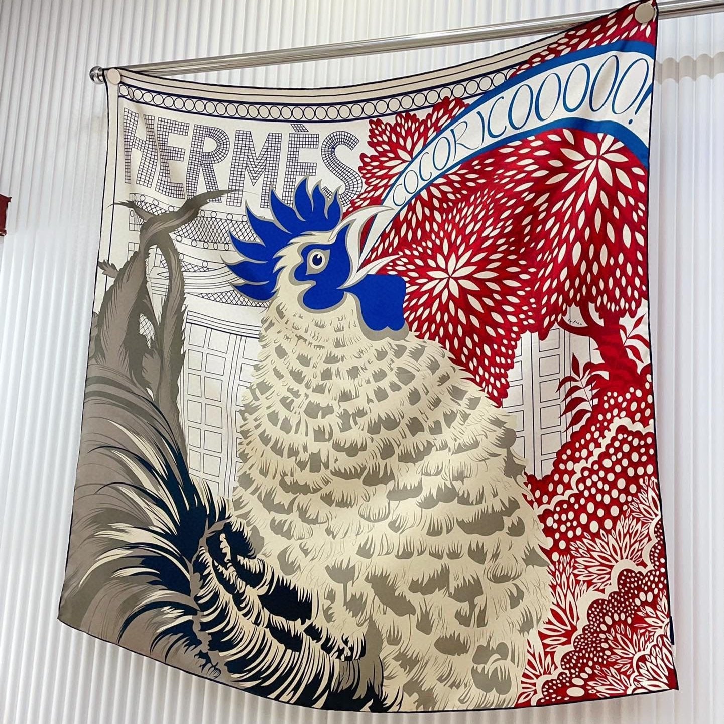 Cocoricooooo! Scarf 90 CM In Red Blue Colorful Silk Twill 348776