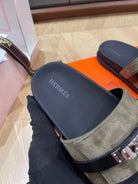 HM 25 Jackson Sandal Khaki Suede Black Calfskin