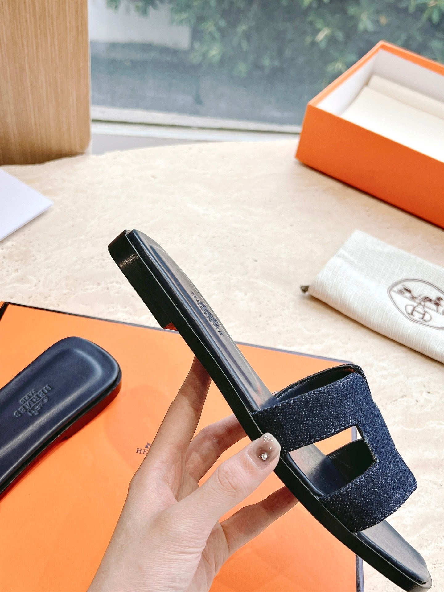 HM 25 Oran Sandal Dark Blue Calfskin Denim