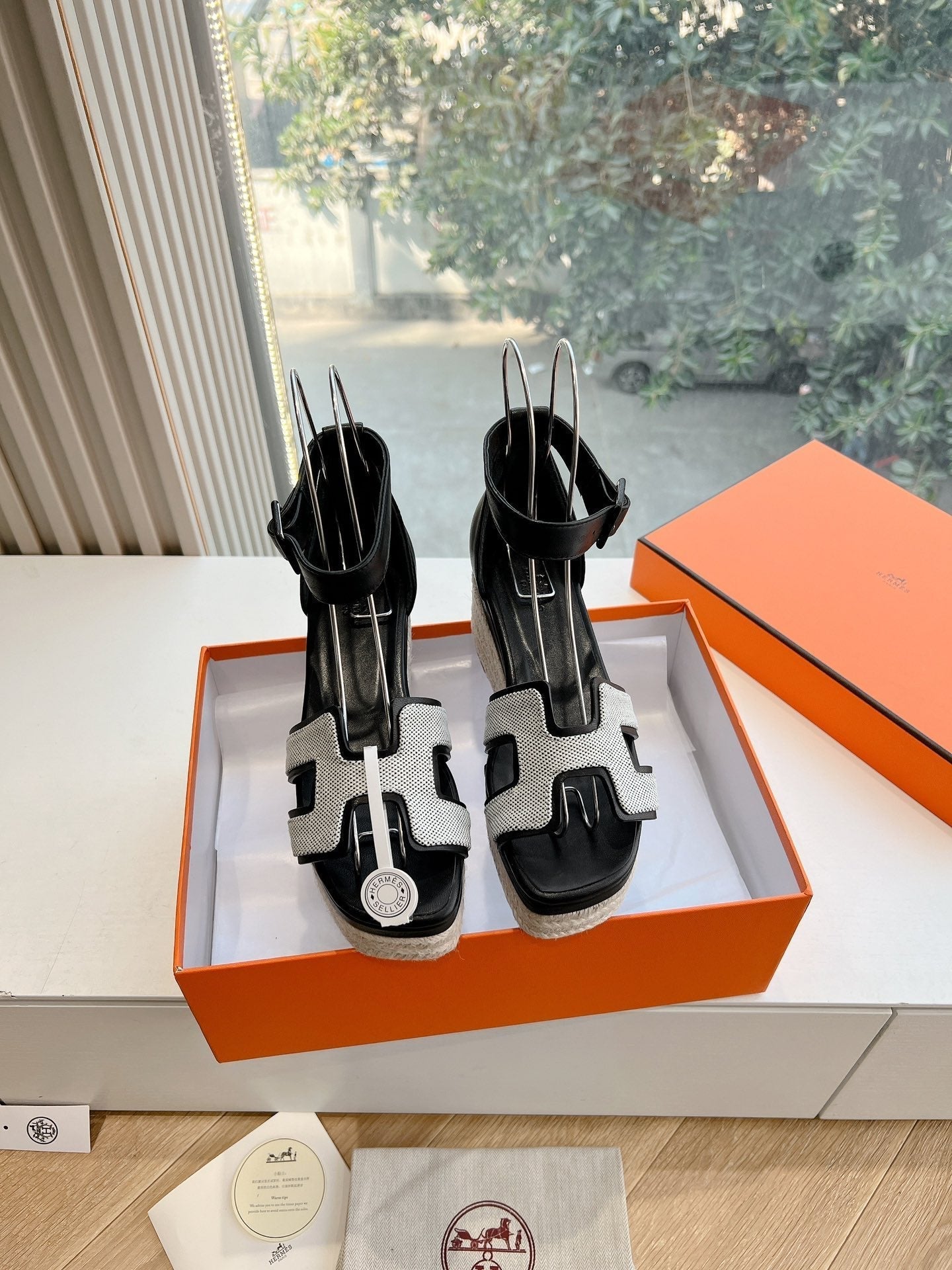 HM 25C Elda espadrille Black Mix White Denim and Goatskin 202832