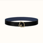 BOUCLE BELT BUCKLE & REVERSIBLE NAVY BLUE AND BLACK AND WHITE LEATHER STRAP 38MM GOLD HARDWARE