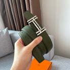 DOUBLE H REVERSIBLE BELT 32MM SILVER BUCKLE BLACK DARK GREEN LEATHER