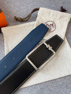 H TUBE BELT 38MM SILVER BUCKLE BLUE BLACK LEATHER