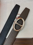 H TWIN REVERSIBLE BELT 32MM SILVER BUCKLE CHOCOLATE DARK BLUE LEATHER
