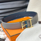 HM HADRIEN 38MM REVERSIBLE BELT GREY AND BLUE LEATHER GOLD BUCKLE