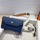 HM KELLY NAVY BLUE POCKET 18MM BELT WHITE LEATHER SILVER HARDWARE