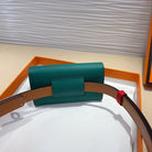 HM KELLY TEAL GREEN POCKET 18MM BELT CHERRY RED LEATHER SILVER HARDWARE