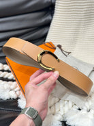 HM LUCK BELT GOLD BUCKLE & REVERSIBLE PEANUT BROWN LEATHER STRAP 38MM