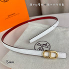 HM MAILLON H BELT BUCKLE & REVERSIBLE WHITE LEATHER STRAP 13 MM GOLD HARDWARE