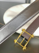 HM REVERSIBLE BLACK AND CHESTNUT BROWN LEATHER STRAP 32 MM GOLD HARDWARE