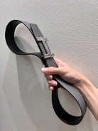 HM TRAVERSE BELT BUCKLE & REVERSIBLE GRAY AND BLACK LEATHER STRAP 38 MM SILVER HARDWARE