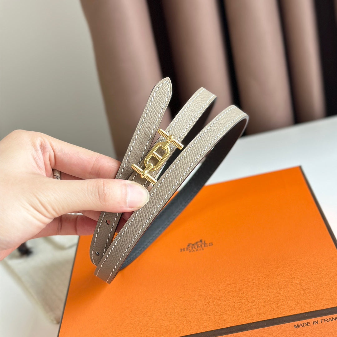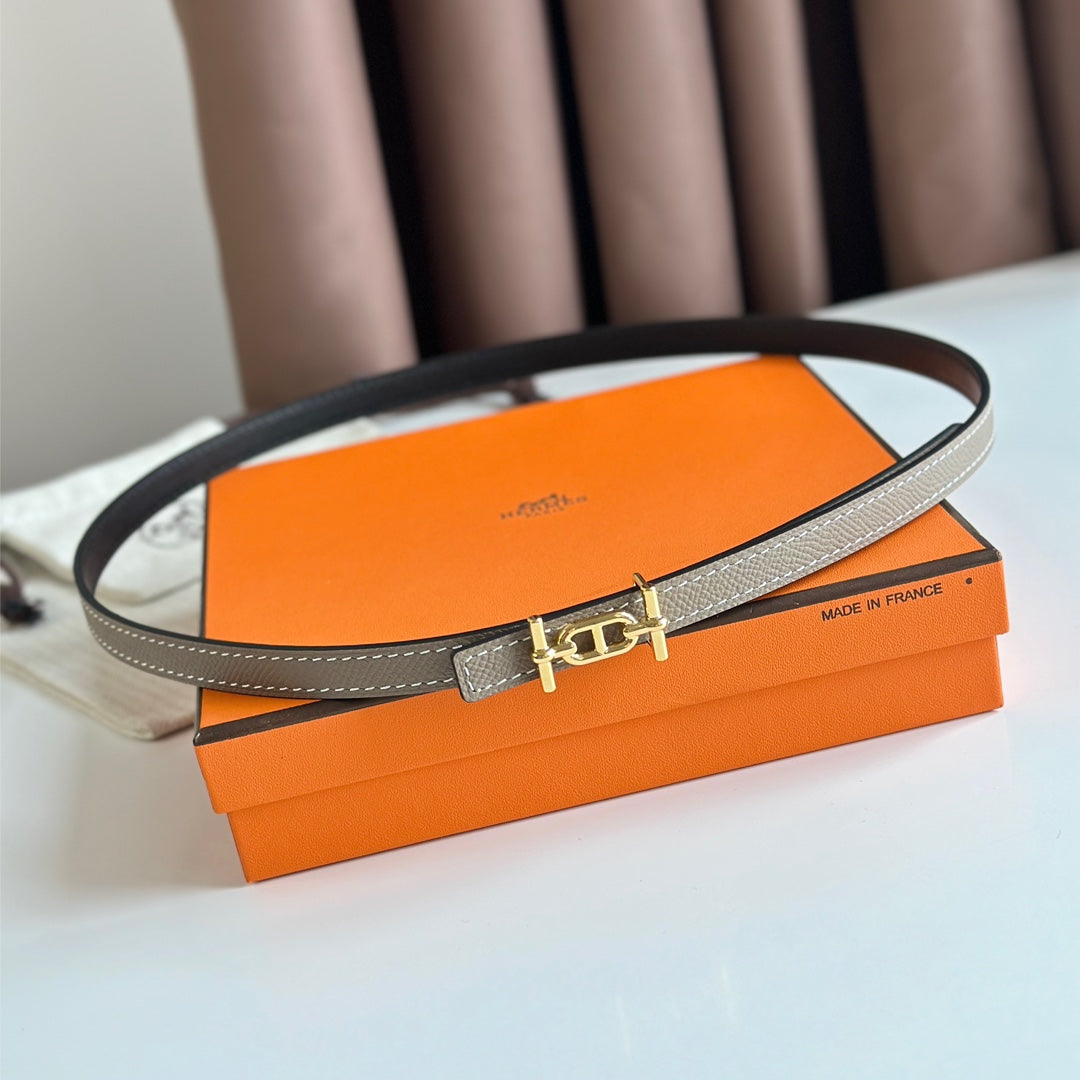 HM MAILLON H BELT BUCKLE & REVERSIBLE CIDER ORANGE LEATHER STRAP 13 MM GOLDEN HARDWARE