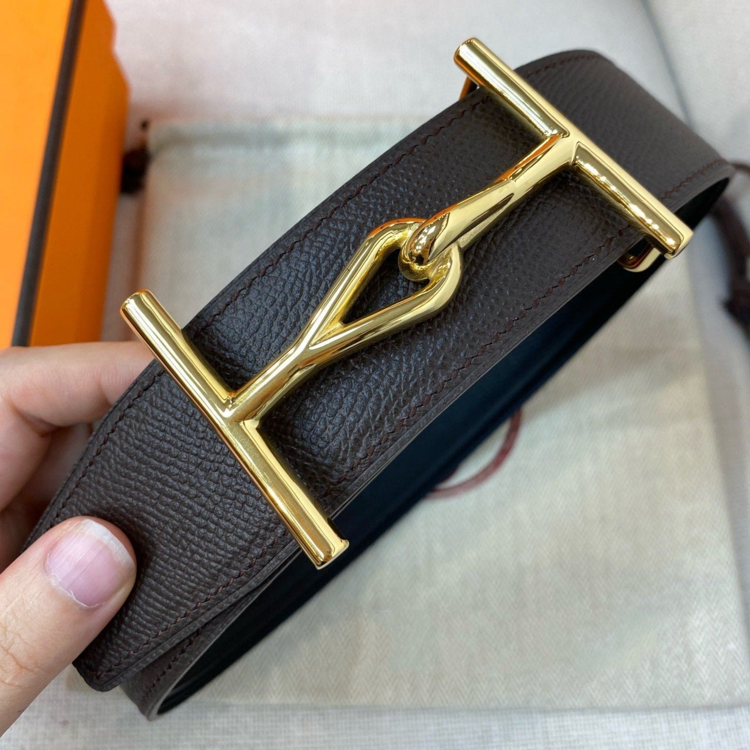 H ULYSSE BELT 38MM GOLD BUCKLE BLACK ETOUPE LEATHER