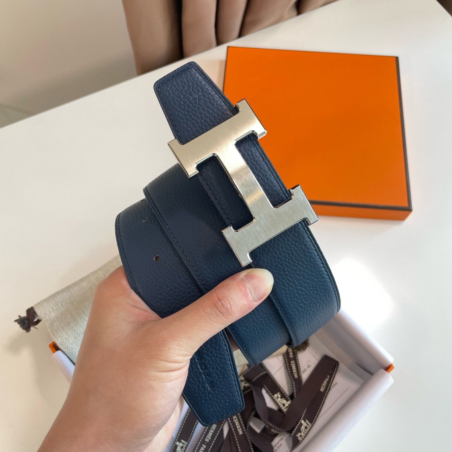 H CONTANCE BELT 38MM SILVER BUCKLE DARK BLUE LEATHER