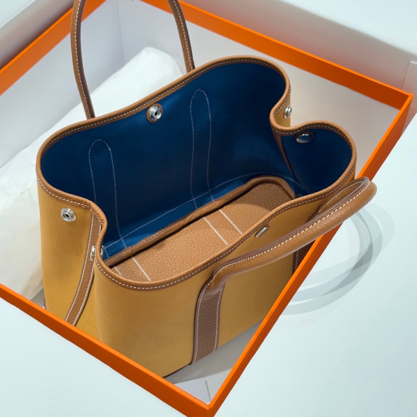 HM Garden Party 30cm Bag Etoupe Togo Orange Canvas