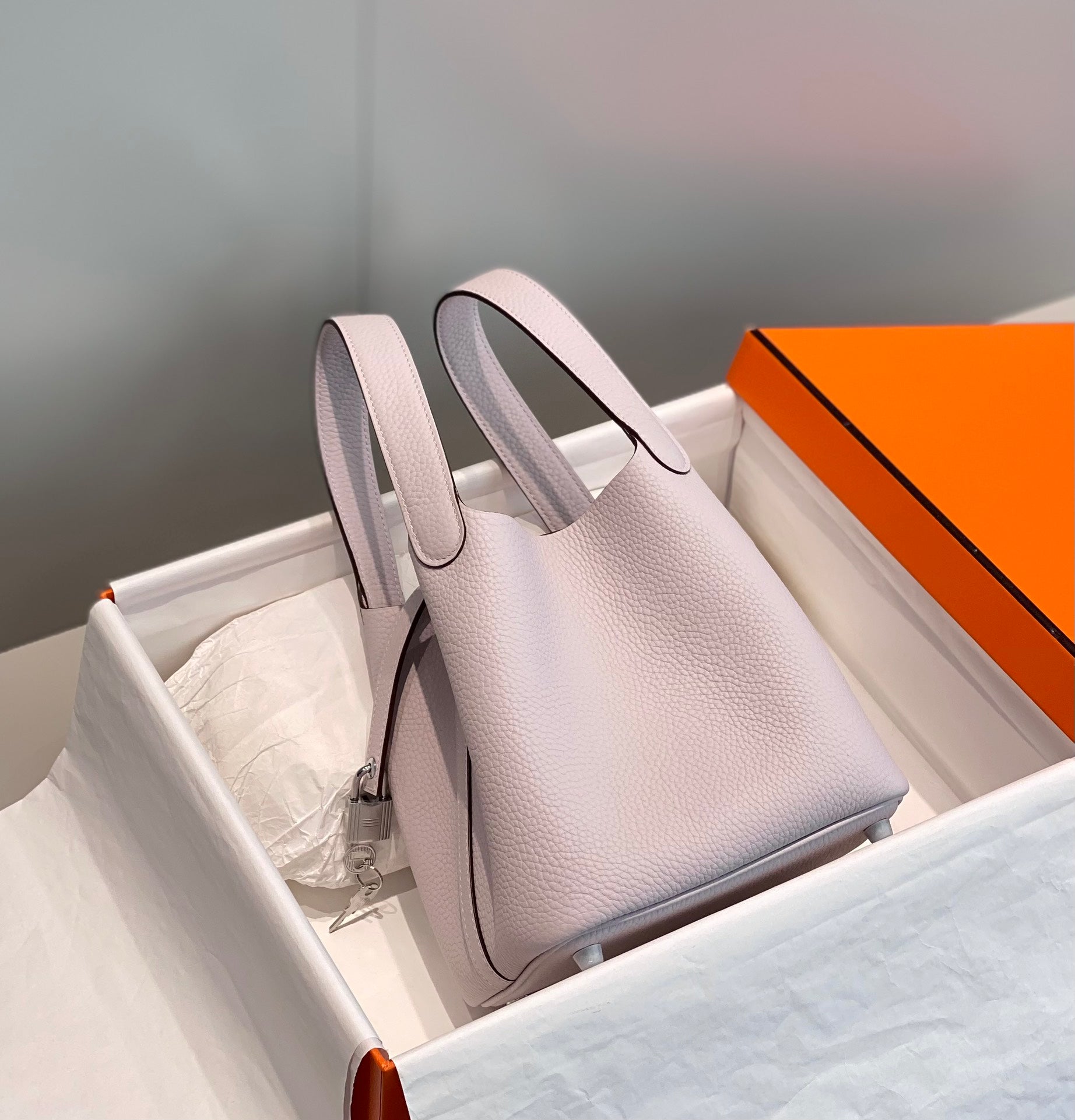 HM 24/24 Mini Bag 21cm Etoupe Evercolor Leather Silver Hardware
