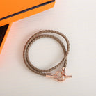 - Braided double tour bracelet in Swift calfskin with palladium-plated Glenan closure