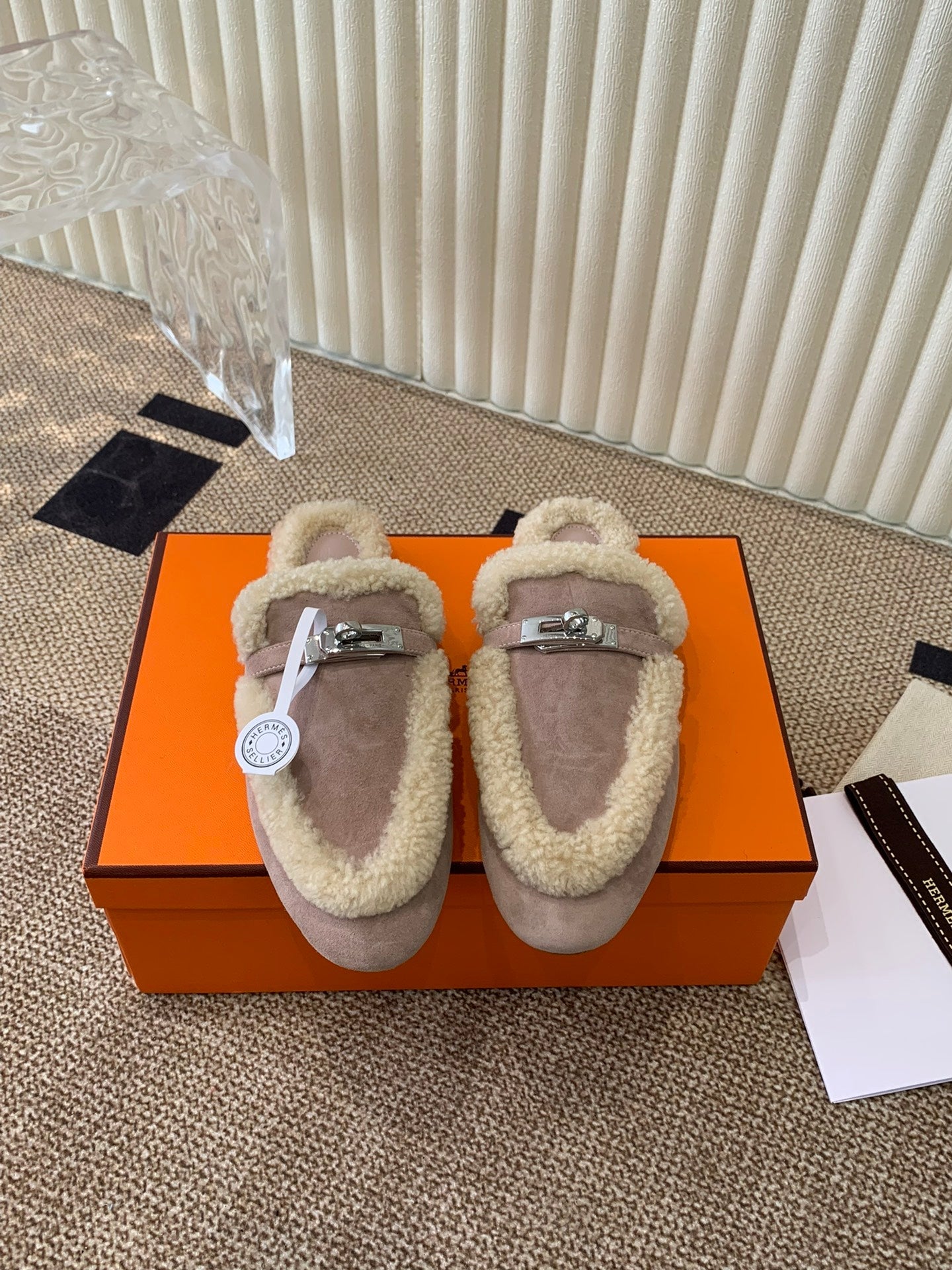 HM Oz Mule In Light Purple Suede Lined With Wool Fleece 113187
