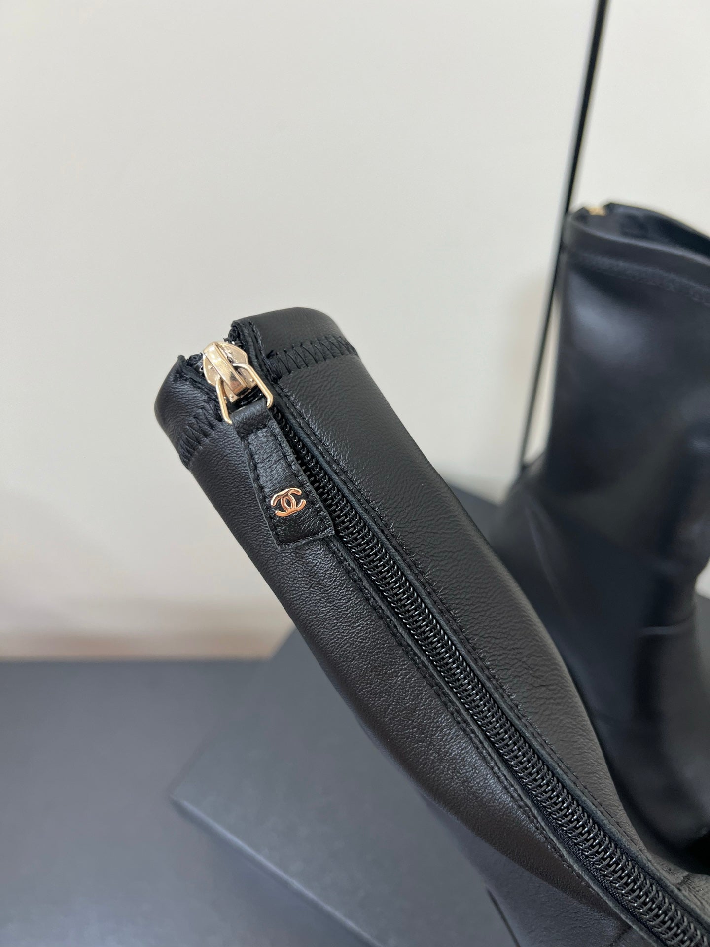 Chanel Double C Giant Pearl Heel Stretch Boots Black Sheepskin 441707