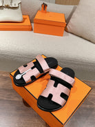 CHYPRE SANDAL BLACK MIX PASTEL PINK CALFSKIN